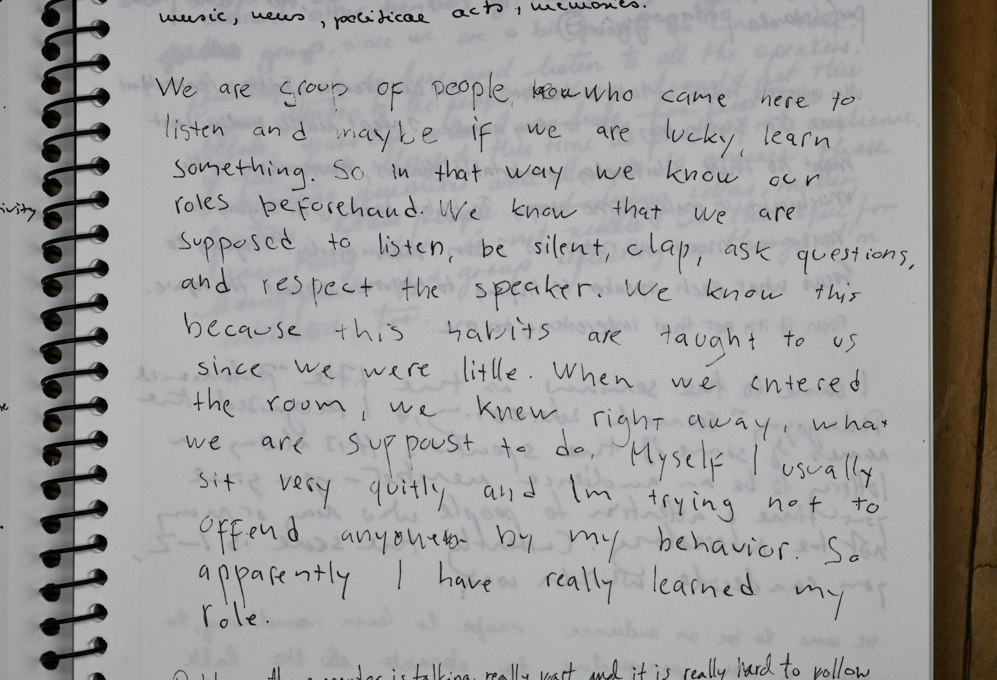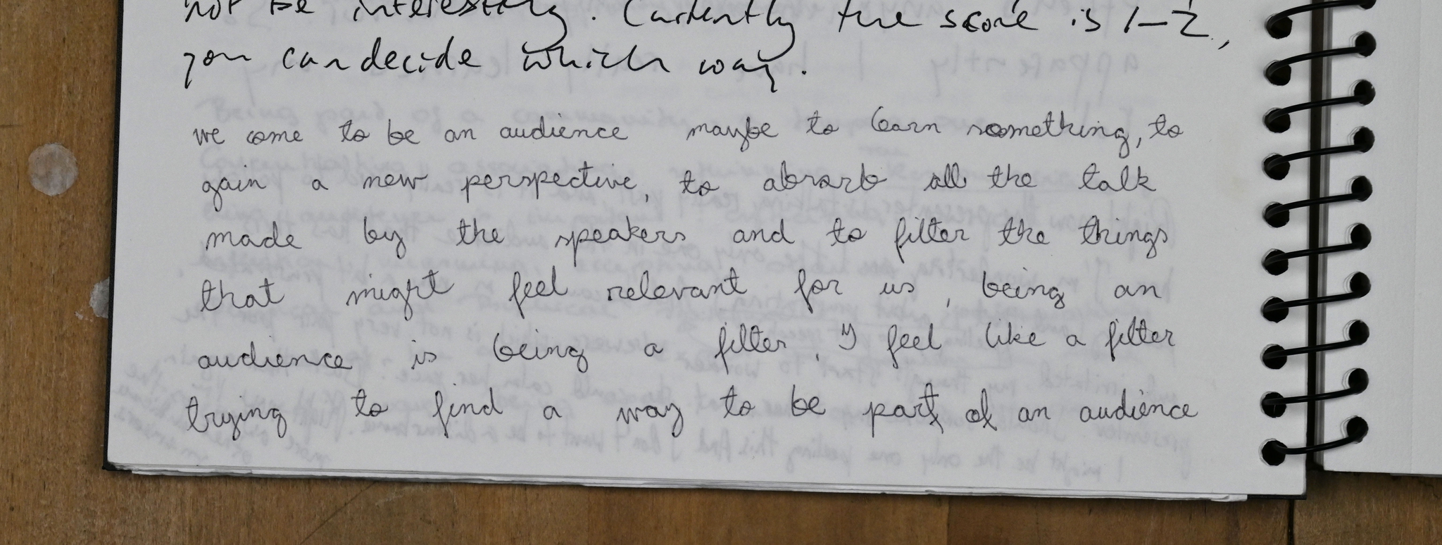 The task I invited the attendees to join was to gather observations, thoughts and ideas on how to audience; to describe the experience of being in the audience in situ.