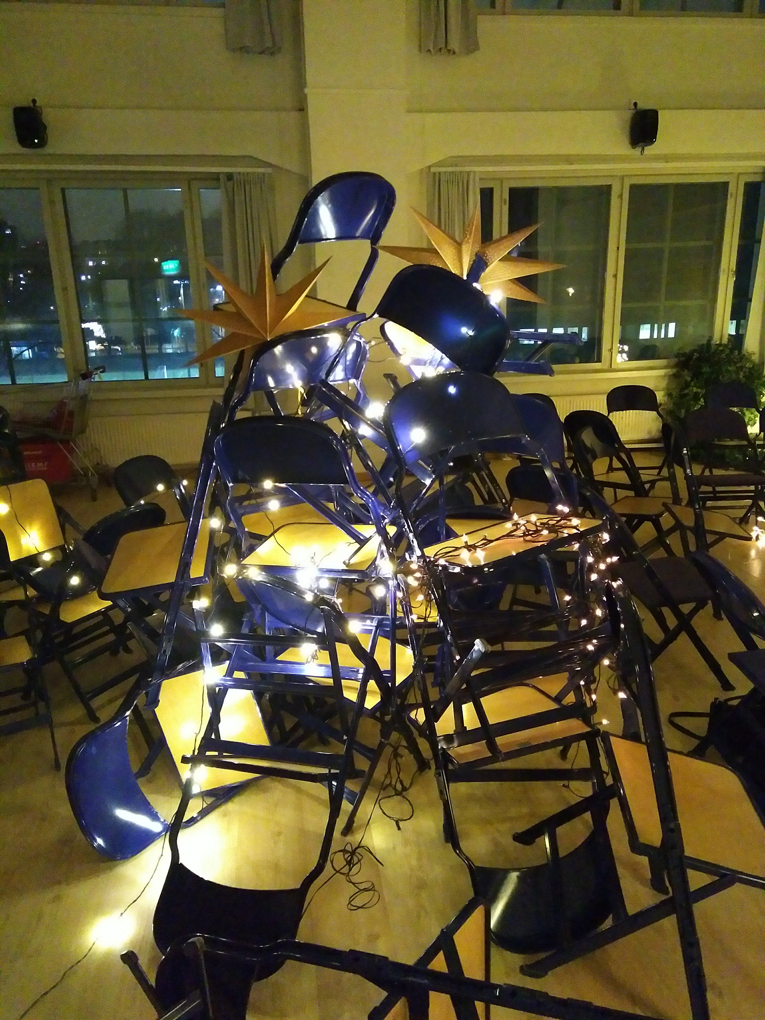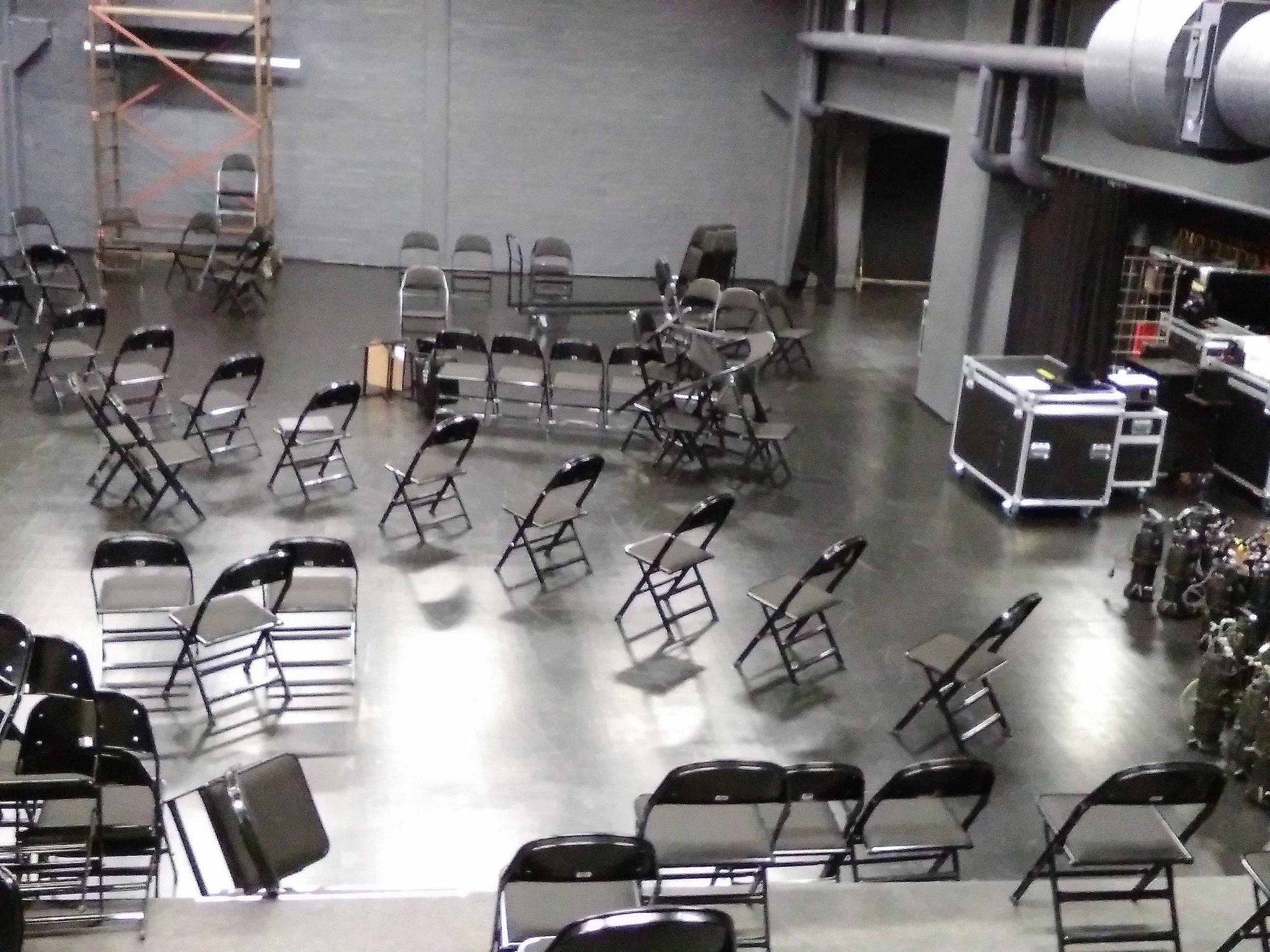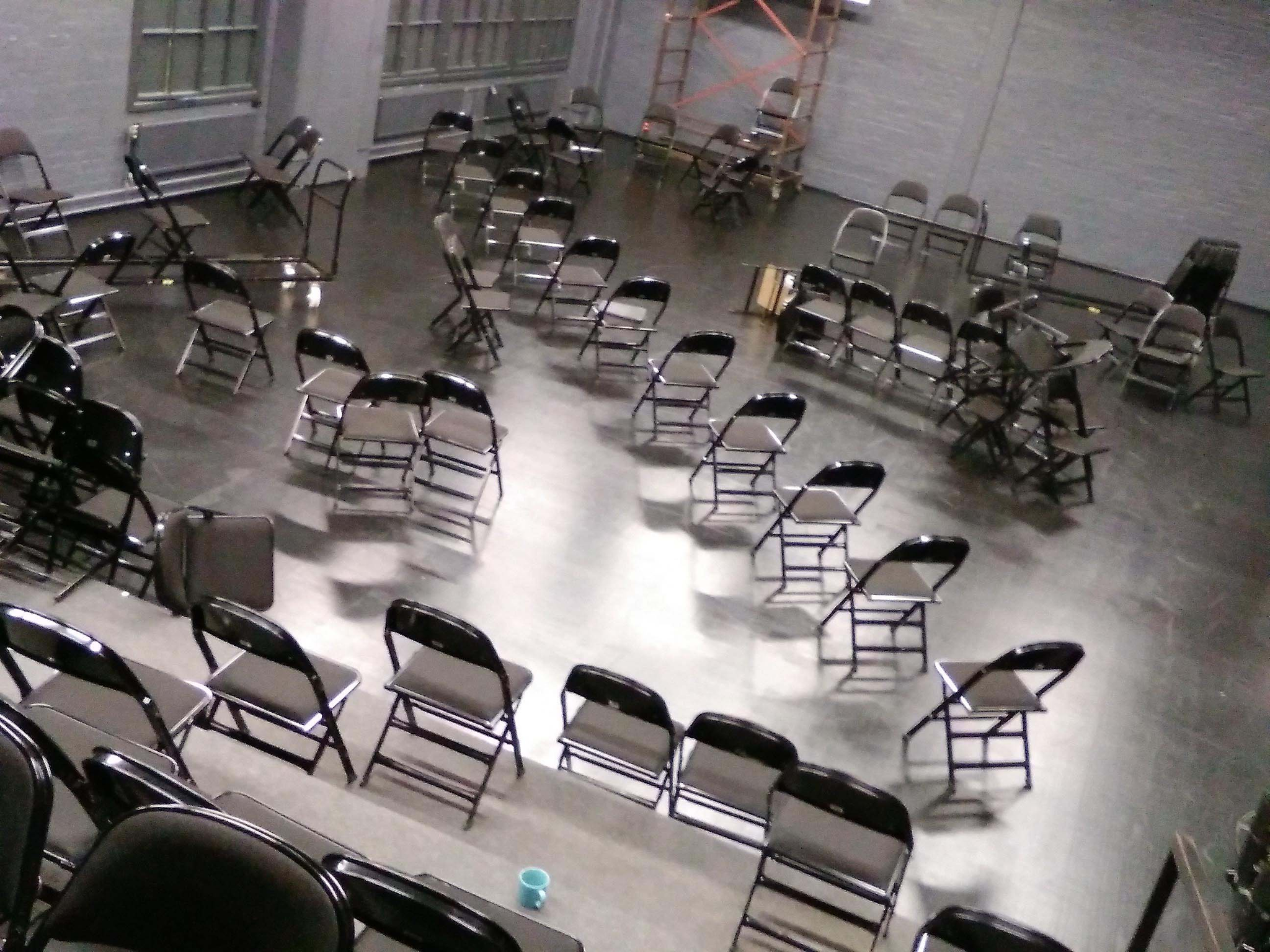 spatial chair composition to be used by the collective body of the audience. This body would have multiple perspectives at the same time. The initial idea for the chair composition had emerged at the Christmas party of Performing Arts Research Center