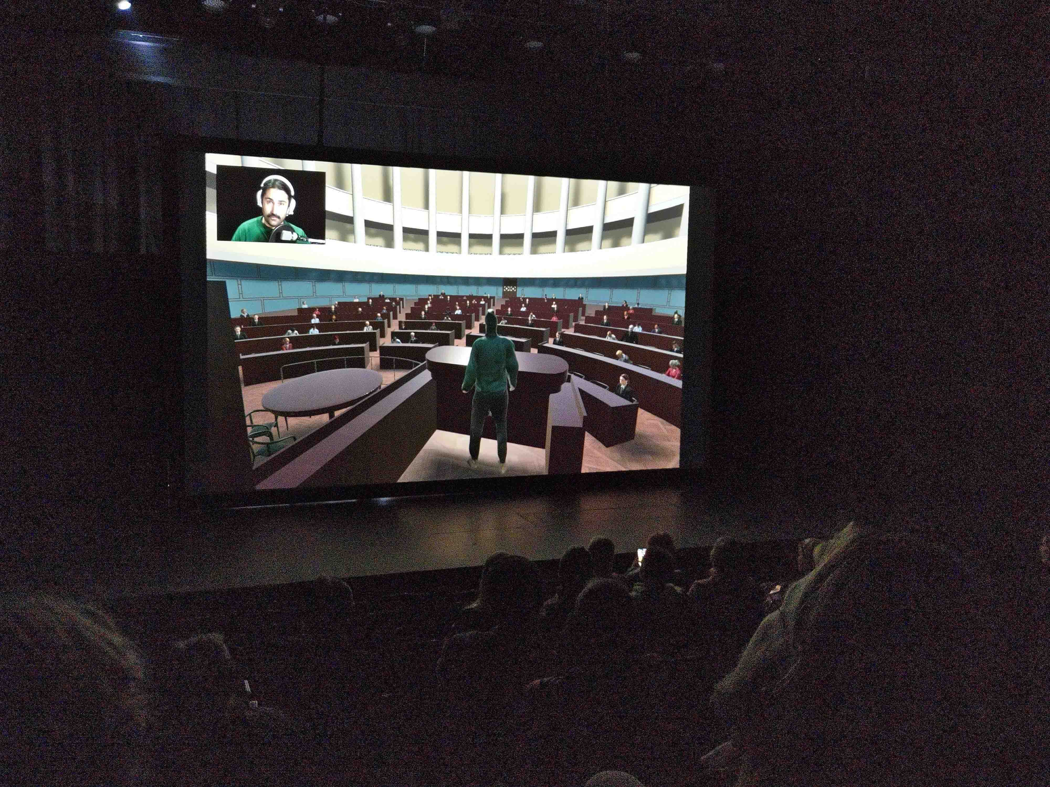 Moving on towards the next century, Erika Fischer-Lichte explains how theatre makers of the late 1700s started to experience the active participation of audiences (it was normal for example to comment the play aloud or argue in the auditorium) problematic and several changes were made regarding the position of the audience: prohibitions and sanctions were installed, the audience was left in the dark as gas lights became available and auditoriums were built in a way which made exiting the room more difficult (Fischer-Lichte, 2008, 38-39). The composition, familiar to theatre audiences of our time, was normalized: actors perform on a lit stage while the audience sits silent in rows of seats in an unlit auditorium. This change seems radical: openly active and complicit audience bodies were silenced and their resonant nature was hidden from sight. The polarity and the contrast between the performative and the resonant part of an artistic event was emphasized. In the light of the performances attended by me during this study, the conventions regarding seating and lighting have changed from 1800s to the contemporary experimental performance scene, but the requirement of silence from an audience is still a strongly defended norm even there. Exceptions do exist: for example Harold Hejazi’s Adventures of Harriharri -series superimposes the format of a multiplayer online game with the stage-auditorium-setting of a theatre. Hejazi performs via a projection of a virtual environment, where his avatar Harriharri operates. While playing Harriharri, Hejazi asks for help from the audience and encourages them to shout what he should do next (Adventures of Harriharri—episode 3 19.5.2022).