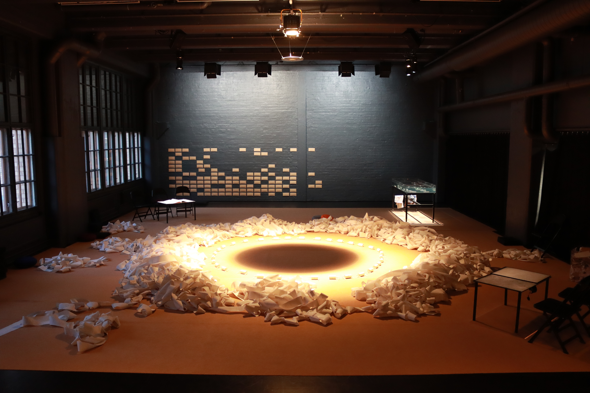 “[...] the word audience, it comes from listening. A spectator is somebody who looks, the audience is the listener. I can hear what happens behind these walls and I can not see it. The entire idea of a perspective can be abolished from the position of hearing because you can hear everything. [...] Listening is very often experienced as penetrating, also like noise, especially unpleasant things—this would never happen if I looked at something. I can always close my eyes or turn the other way. [...] Every single person in the room influences the acoustic.” (Kucia et al. 5.4.2022)