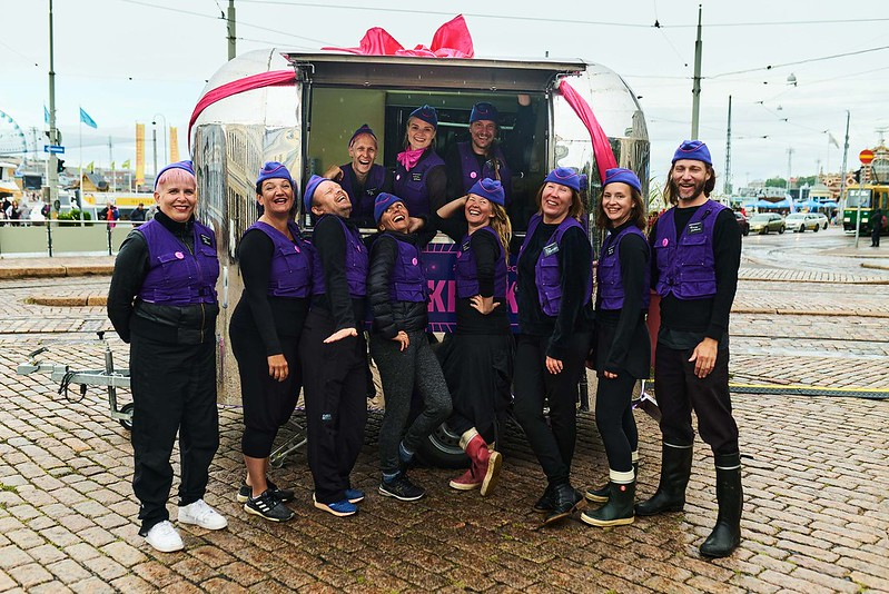 The Performance Wagon was a performance artists’ version of an ice-cream stand: while strolling along Esplanade boulevard in Helsinki one could stop to the wagon, scroll the menu of performances available and purchase one. The performances took place in several sites in the vicinity of the wagon and could be experienced by individual audience members or small groups.