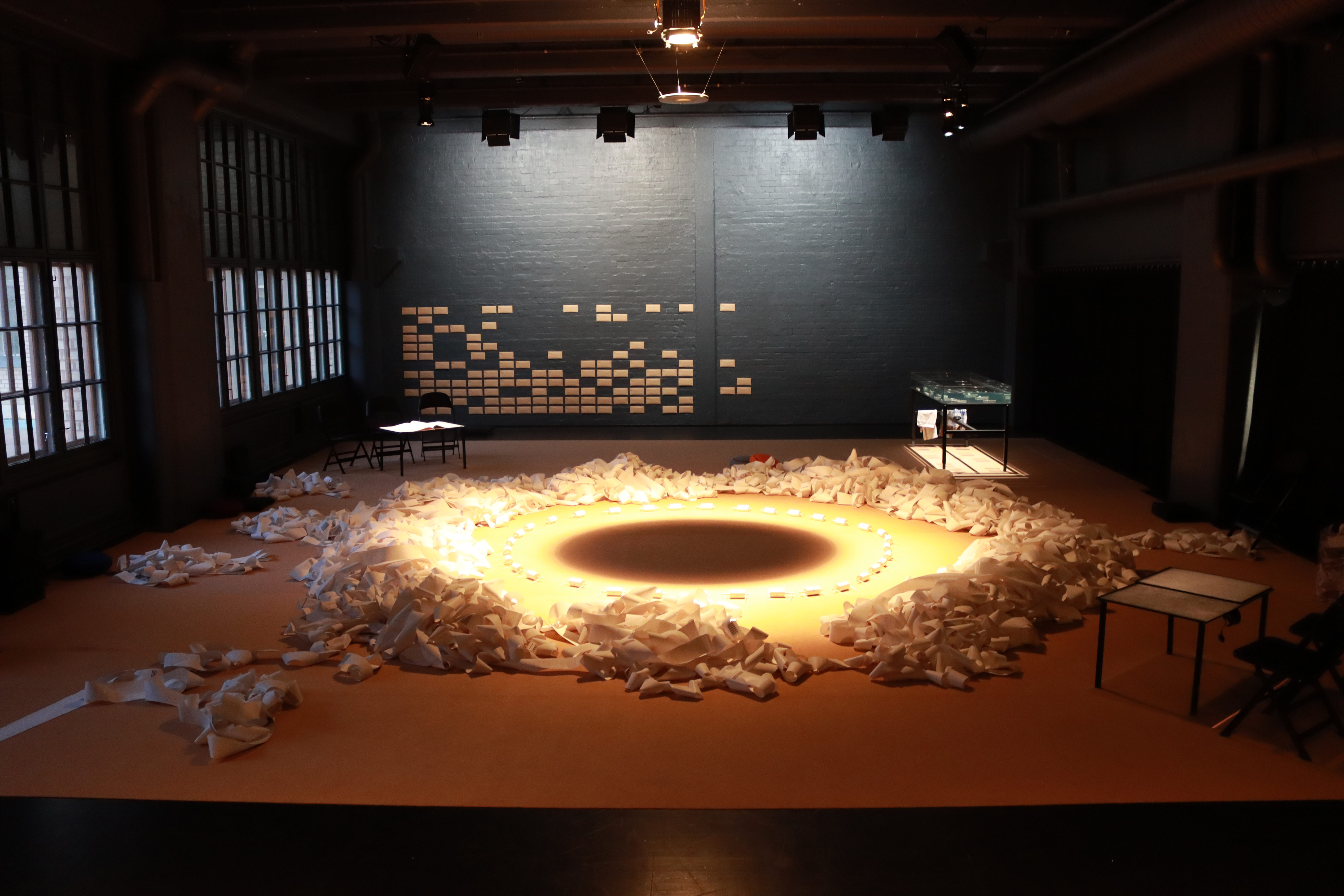 This artistic doctoral research approaches art, not as a variety of artworks or performances, but as a variety of collective bodies that are summoned. It addresses the subordinate and complicit way collective audience bodies form in relation to artistic performances. The commentary introduces the concept of an “audience body”, emerging when individual bodies gather to become an audience. Audience bodies are described through preconditions that are needed for one to appear, conditions that contribute to its subsistence and variables that determine the primary qualities and the degree of actuality of that audience body. More specifically, the commentary addresses the local genre of “esitystaide”, developed especially in the Helsinki-area during the last 30 years. Neologism “beforemance art” is introduced due to a lack of an English equivalent. Esitystaide/beforemance art is the artistic context of this study and is presented as a genre of art, in which the complicity of audience bodies is a fundamental material of artistic creation. The Finnish word “esitys”, being the medium of the genre of esitystaide, is defined as the sum of a performance and an audience body. The theoretical approach towards audience bodies is presented as impartial with regard to different genres of art, but the practice of research favours esitystaide/beforemance art. This leads to political conclusions that defend the exposed complicity of and the experimental relation to audience bodies which are characteristic for this specific genre. This theoretical argumentation has been developed through an iterative series of 30 drafts and two examined artistic parts, made by the author, as well as through a parapractice of audience membership. The drafts and examined parts are works of esitystaide/beforemance art, in which printed or digital texts are staged in different ways for audiences to read. The works and the thinking developed in them have been significantly affected by dialogues with audience members and their feedback. The commentary discloses how the process of thinking, resulting in the main arguments of the work, has evolved through this artistic research practice and how temporal, spatial, textual and material design of the events has been developed to address more adequately the phenomenon of an audience body. The parapractice of audience membership is introduced as a term describing the attendance of artworks made by others—a way of accumulating knowledge parallel to and yet different from practicing art. The arguments made in the commentary aim to provide conceptual tools for artists, scholars and pedagogues who attend the phenomenon of audience in their work. They can also serve as a basis for further research on the political significance of esitystaide/beforemance art and related art forms. Methodologically, the research offers an example of an iterative and dialogical artistic research practice and its presentation; the relationship between art and theory unfolds as both fruitful and troubled. Through the introduction of the parapractice of audience membership, it argues for using art, equally to the use of bibliographical materials, as reference material of artistic research. Through the use of a Finnish term and its local context as part of concept-creation in English, the work defends the importance of local thinking, which links artistic research to the land upon which it takes form.