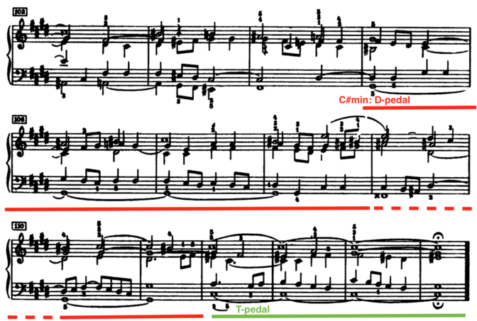 Harmonic pedal appears in several distinguishable variants, that will be discussed in turn: D-pedal, ‘fanfare’ pedal, sectional D-pedal, opening T-pedal, and closing T-pedal. The concept known as ‘inverted pedal’ is, in this research, not seen as one particular model. Some instances of it will here be recognized as thematic pedal, others as pedal-ostinato in the upper voices.