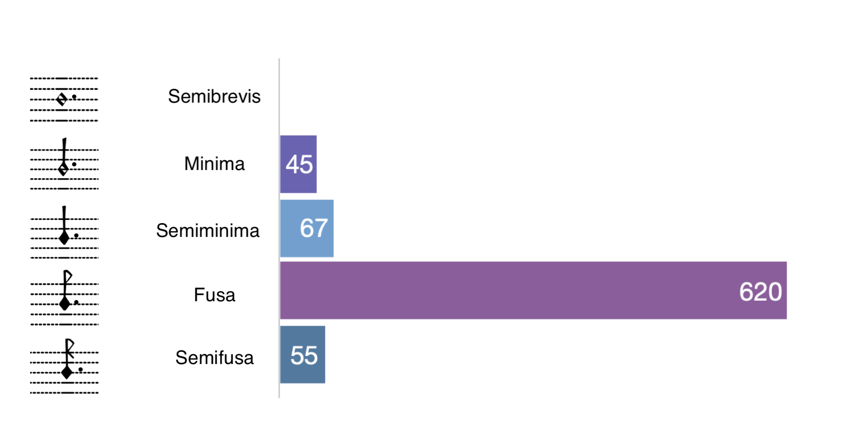 - It is very clear that the fusa and semifusa are the most standard note values that appear in these ornaments. The semiminima comes in second, and the use of the minima and subsemifusa is much less frequent. The use of the semibrevis is extremely rare.