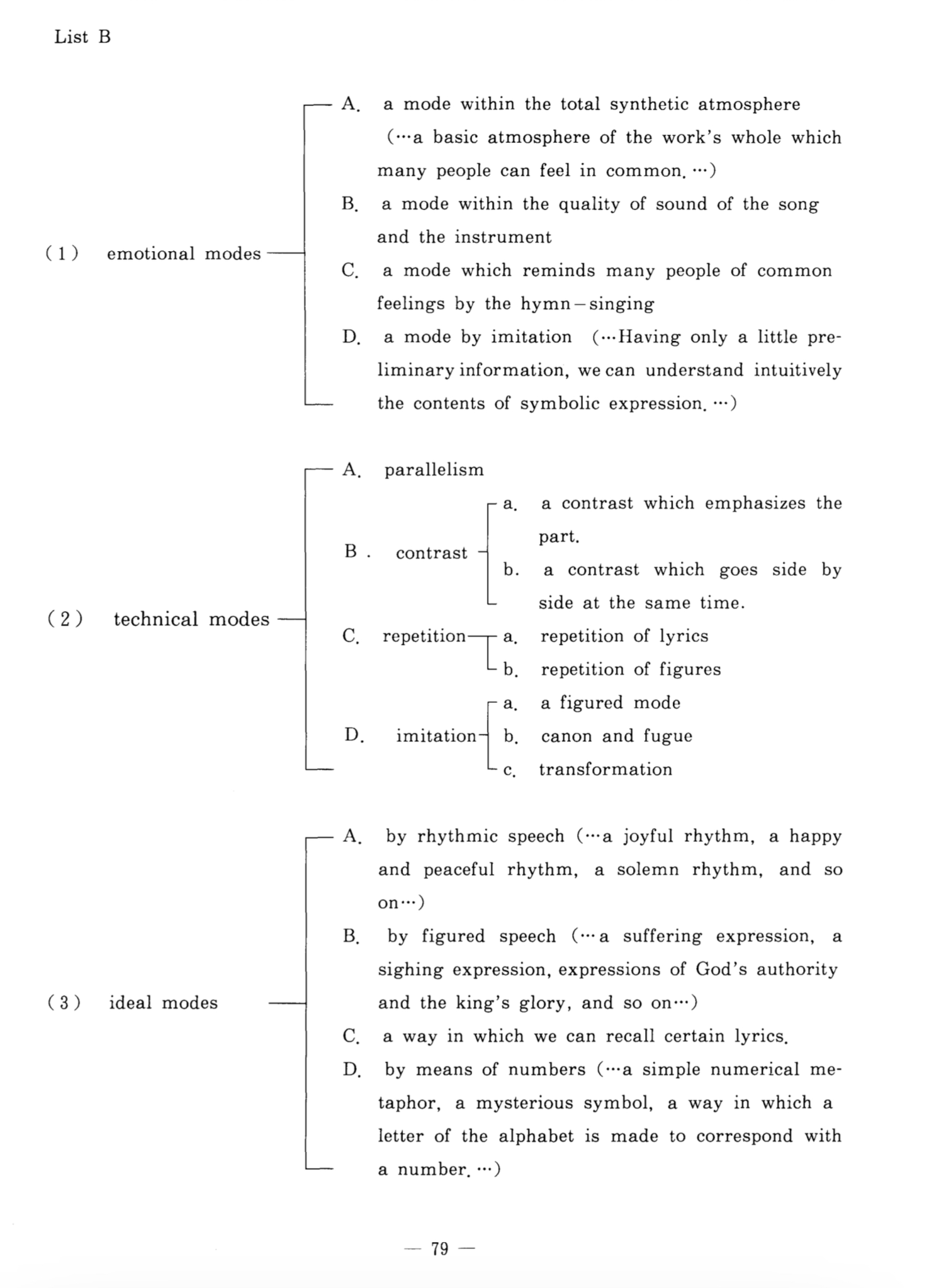 Prof. Kataoka revised his research plan (List B below) seeking a broader aesthetic perspective from his previous studies of symbolic expression in Bach’s Mühlhausen vocal pieces—illustrated by his 1987 study of Cantata No. 196, initially classified the concrete methods of symbolic expression based on A. Schering(1877-1941)’s theory. The revised method, underpinned by his interpretation of idee concrète, frames emotion through psychological rather than spiritual lenses, emphasizing the musical Gestalt.