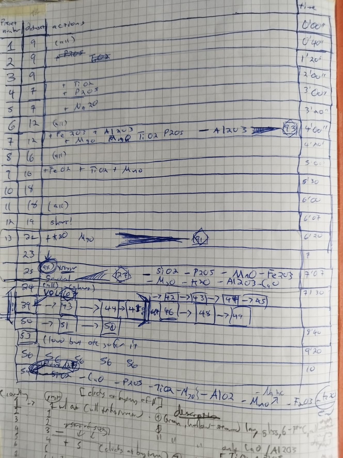 The performance score that was used for this realisation and two of the public performances enacted with this system is included here. Approximate times for the changes are given as are lines pertaining to the dataset and molecular triggers that turn oxides within the molecule on and off.