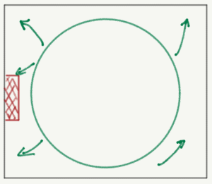Je hebt een box met daarin een knop. Dit is de trigger knop. In de box zit een bewegende bal, de rouwbal. In het begin vult de rouwbal bijna heel de box. Hierdoor hoeft er maar weinig te gebeuren waardoor jetriggerknop wordt geraakt. Naar mate de tijd verstrekt wordt de bal kleiner, waardoor je minder snel triggers ervaart. Rouw is er wel, maar het hoeft je niet direct te blokkeren in je dagelijkse functioneren. Aan de andere kant, het is niet zomaar voorbij. Hoewel het niet meer alle ruimte inneemt kan de pijn op een onverwacht moment zomaar toeslaan.