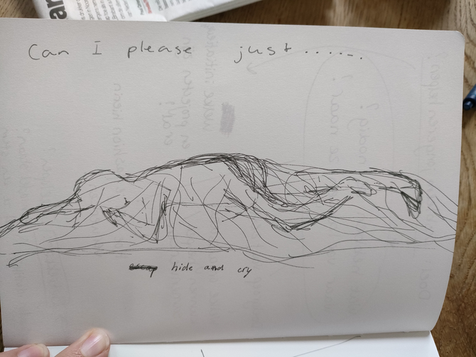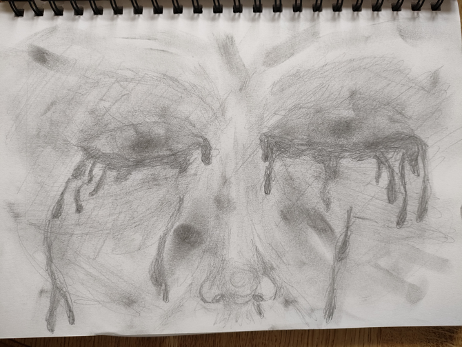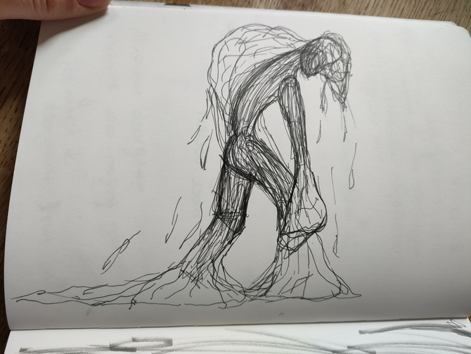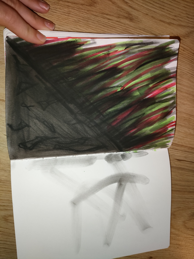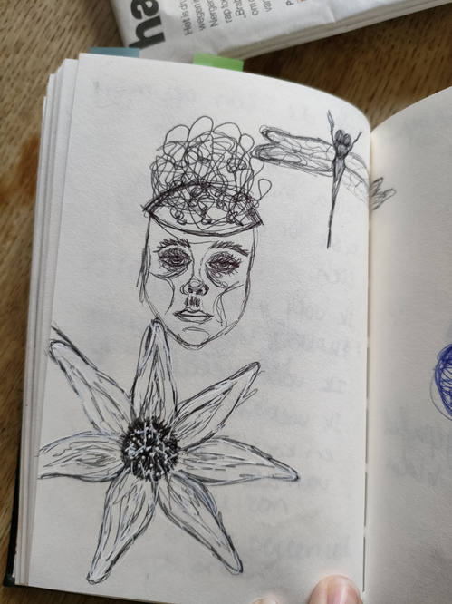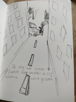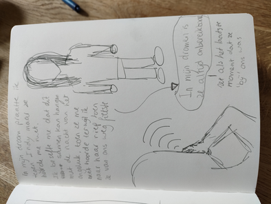 Voor de zelf observatie probeerde ik schetsen te maken van de dromen die ik heb gehad van Indy en die ik me kan herinneren. Toen realiseerde ik me dat Indy altijd onbereikbaar is in mijn dromen. Dit komt overeen met het laatste moment dat ik haar zag. Ze fietste van me weg en ik riep haar na, maar ze kon me niet horen, waarna ze uit mijn zicht verdween.
