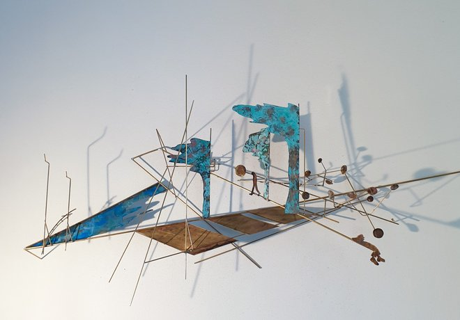 Nu is ze met messing bezig. Dat is een materiaal wat je kan kleuren met zuren. Ze liet me een aantal voorbeelden zien die ze in huis heeft hangen. Ze is dan op zoek naar:hoe kan je het kleur geven zonder dat je verf gebruikt?