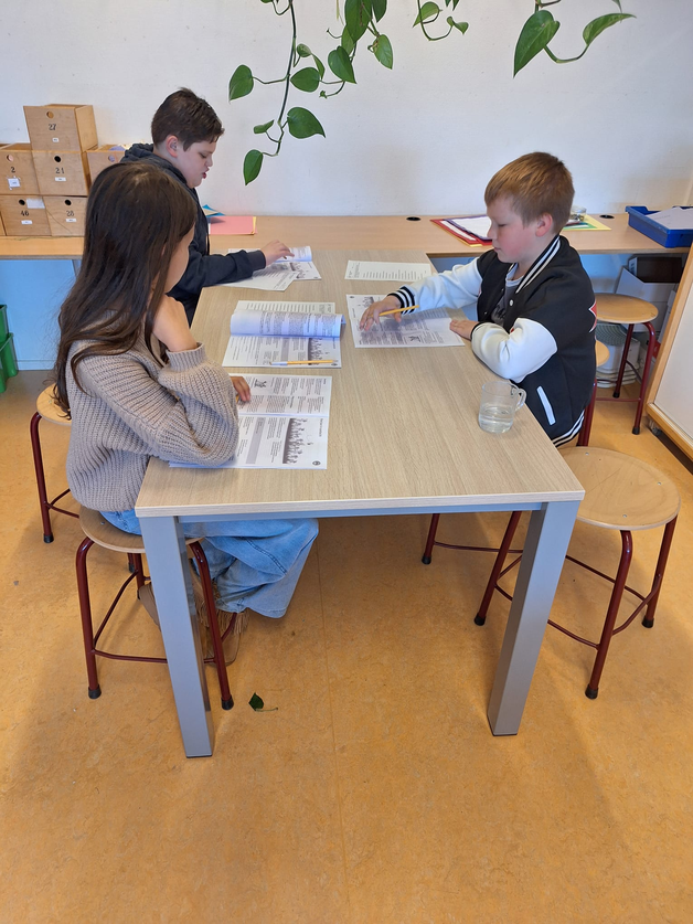 Het laatste groepje zit in de klas, ze ziet dat er iets niet klopt en gaat er bij zitten. Een leerling van het groepje is al klaar en maakt de klaar opdracht terwijl de andere twee van het groepje nog bezig zijn met het blad met vragen. De juf gaat het gesprek met ze aan, waarin ze kritische vragen stelt. Ook maakt ze de vergelijking met werken in een ploeg. Als team, zorg je met elkaar voor elkaar. Daarin kan niet iemand sneller vooruit.