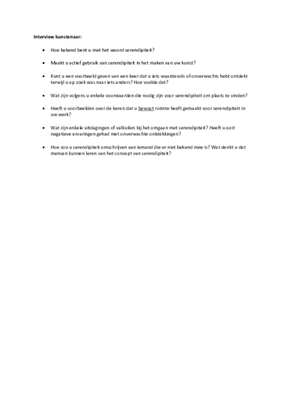 Door kunstenaars te interviewen ben ik erachter gekomen dat serendipiteit heel erg verweven zit in de werkwijze van de kunstenaar en de manier waarop de kunstenaar in het leven staat. Ook kon ik hierdoor een mooie vertaalslag maken naar het onderwijs.