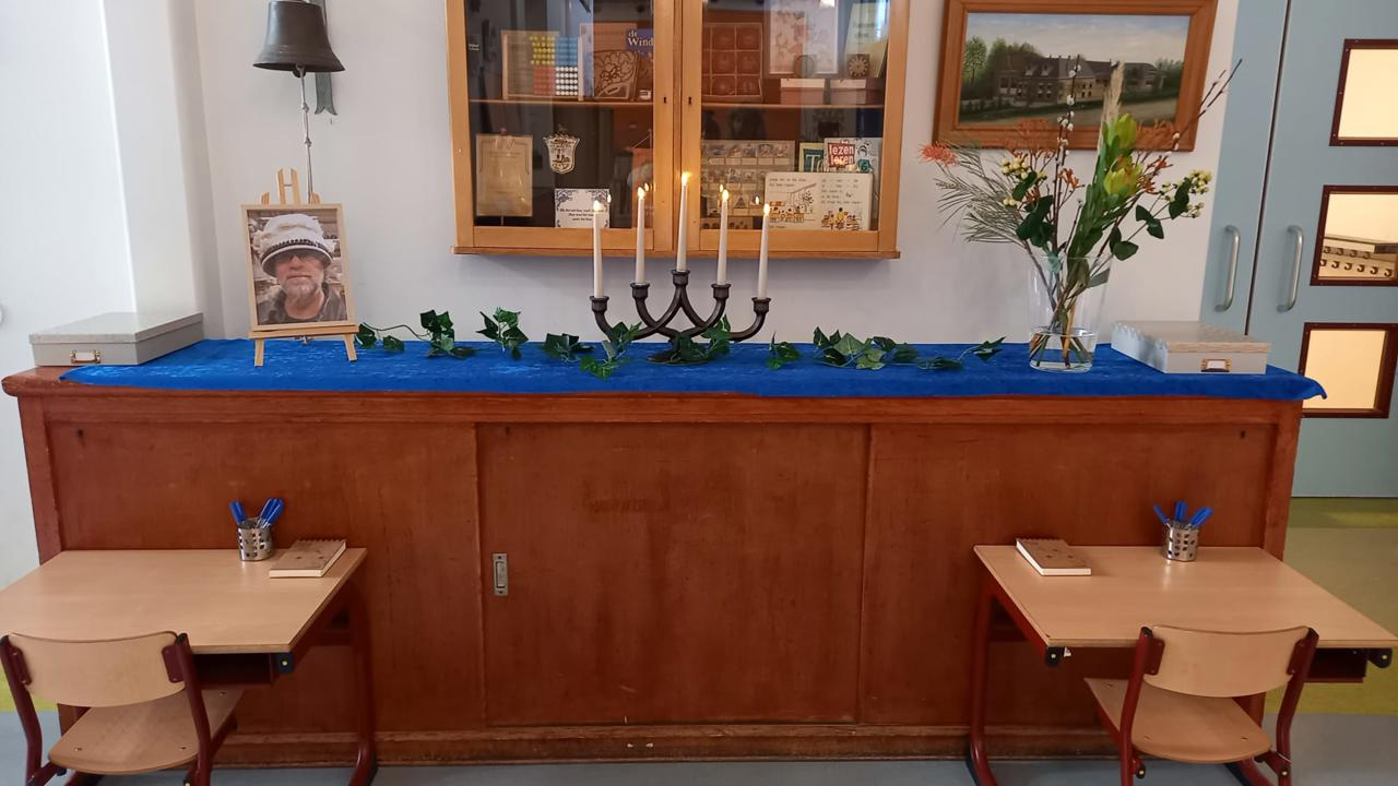 We hebben op school een gedenkplek gemaakt voor Ron. Ouders en leerlingen kunnen hier iets in de boekjes schrijven of een tekening in de doos doen. Ik had gevraagd aan de kinderen of ze een tekening wilde maken voor Ron en bijna iedereen wilde dat wel doen. Zodra ze een tekening afhadden liep ik dan met ze naar het plekje en konden ze de tekening aan Ron geven. Dat waren hele pure momenten. De kinderen pakten mijn hand, ook als ze dat normaal nooit deden, en liepen heel stil met me mee. Bij het gedenkplekje bleven ze even staan en zag ik sommige kinderen een klein gebedje fluisteren. Terwijl we terugliepen naar de klas, stelden veel van hun een vraag. ‘Wie wordt nu de nieuwe baas van de school juf?’ of ‘Is hij nu ook in de hemel waar opa Karel is?’ door de dag heen kwamen de kinderen soms iets vertellen over wat Ron had gedaan wat ze zich nog herinnerde.