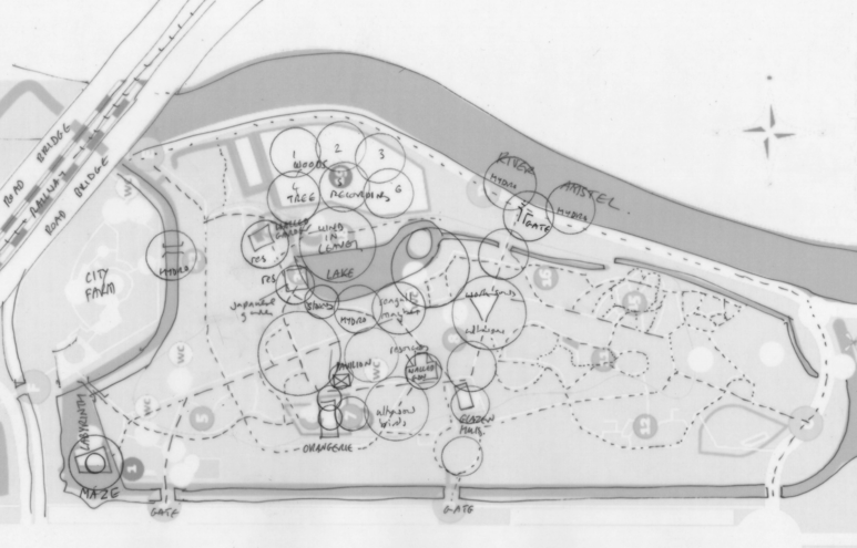 In these pieces, although sounds are triggered at particular locations, some sounds will continue playing, overlapping with the next sound. The combinations are determined by the route of the listener and cannot be fully predicted. In this case the listener has no knowledge of what is being combined, sometimes it is not possible to distinguish the different layers of sound until one of them stops. This also means that walking the same path in different directions could sound quite different. There are two versions, one in the Amstelpark in Amsterdam, the other in the Pildammsparken in Malmö, Sweden.