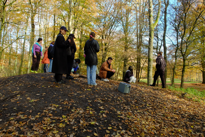 One group ditched the headphones completely for their procession through a park with portable loudspeakers. The sounds did truly blend (and compete) with the sounds of the environment, but also, by leaving space for listeners to move around and hear things from different perspectives, they encouraged interaction and engagement. Standing around a loudspeaker concentrated the listening of the whole group, even when it was not producing any sound.