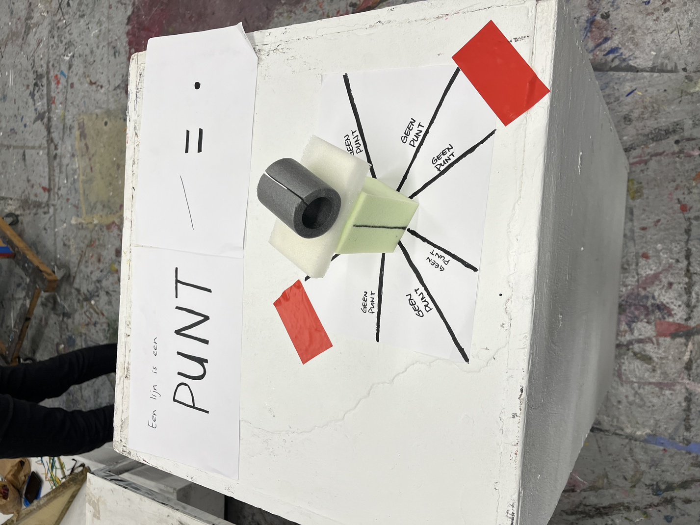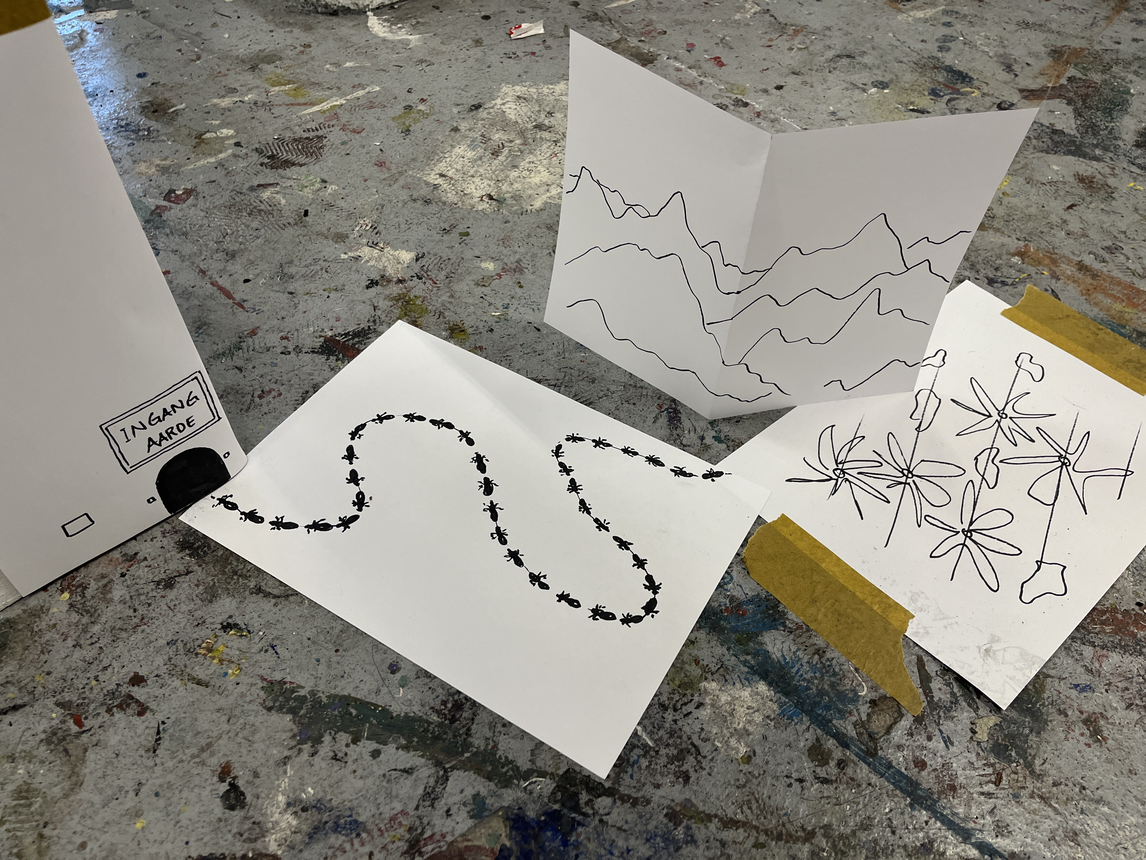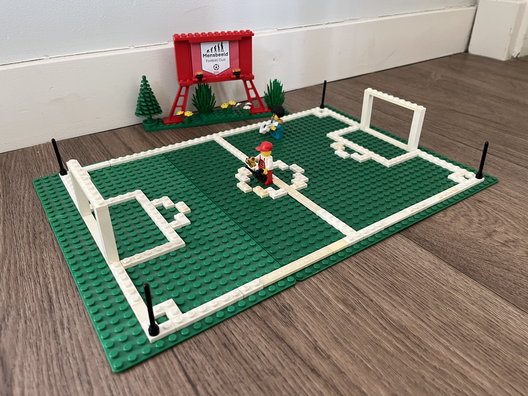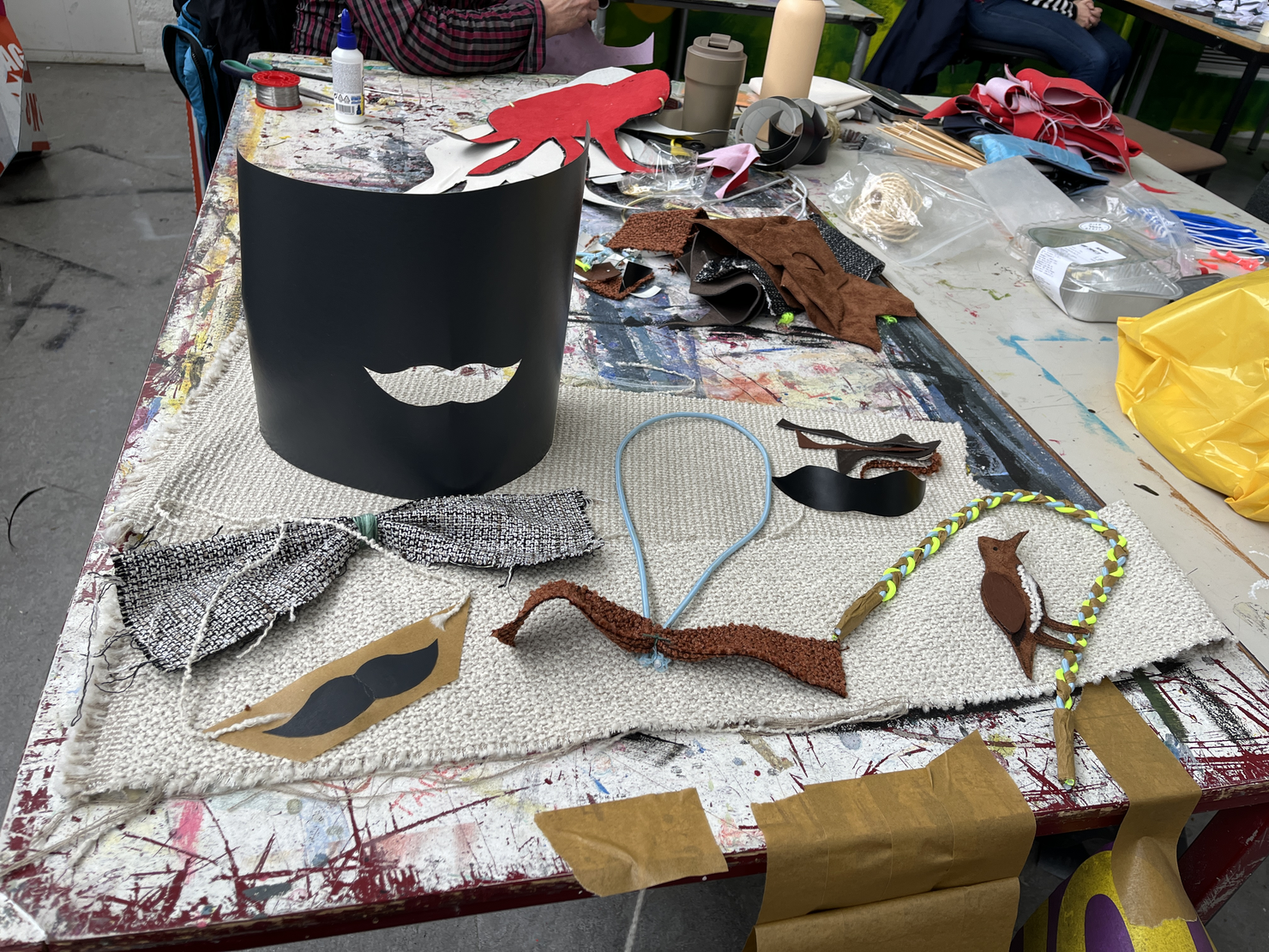 Het monster ontstaat door de kleine bouwsteentjes ervan te maken. Een nagel, een buik, een hoorn of....een snor! :-D