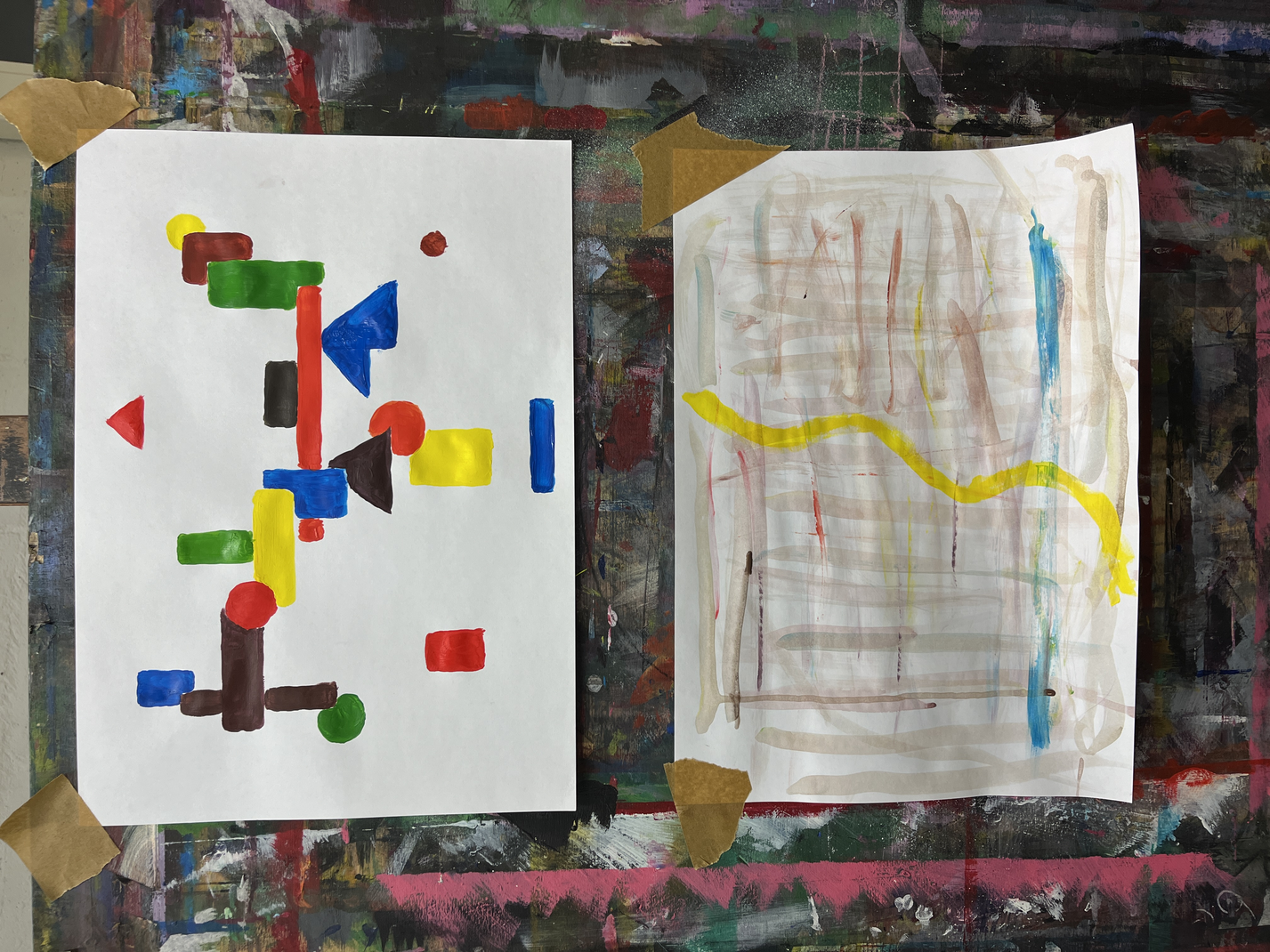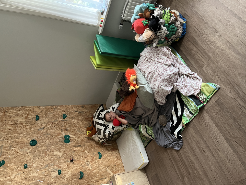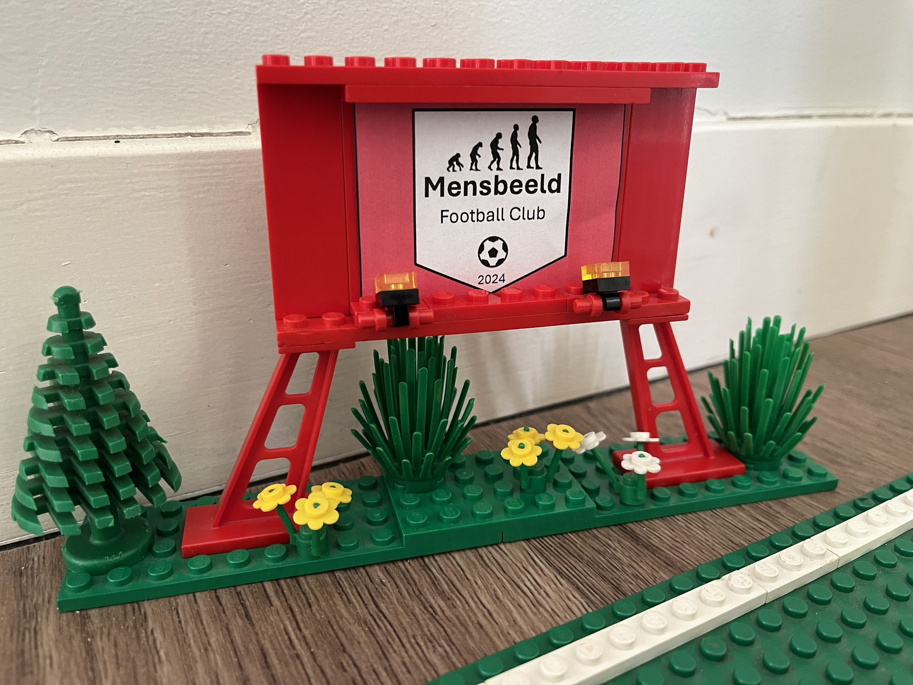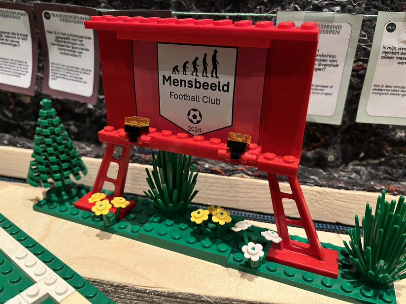 Het monster ontstaat door de kleine bouwsteentjes ervan te maken. Een nagel, een buik, een hoorn of....een snor! :-D