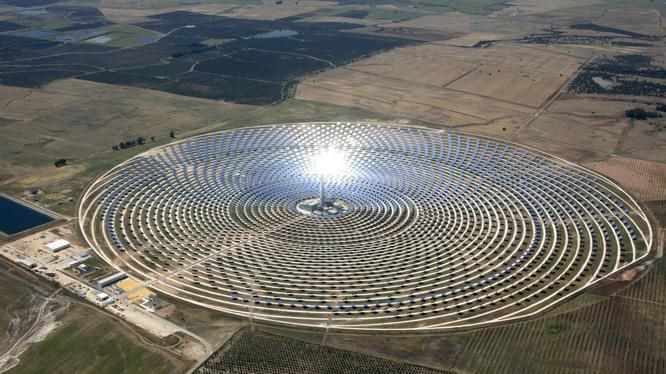 Terug naar het Licht in de letterlijke en symbolische zin. Deze geconcentreerde zonenergiecentrale stelt de toekomst van energievoorziening voor, wanneer de mensheid klaar is om uit het tijdperk te treden van opzuigen en verbranden van olie.