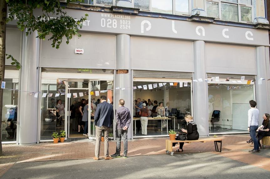 Figure1: PLACE’s multipurpose workspace and public venue on Lower Garfield Street in Belfast. Photo by Joe Magowan, courtesy PLACE