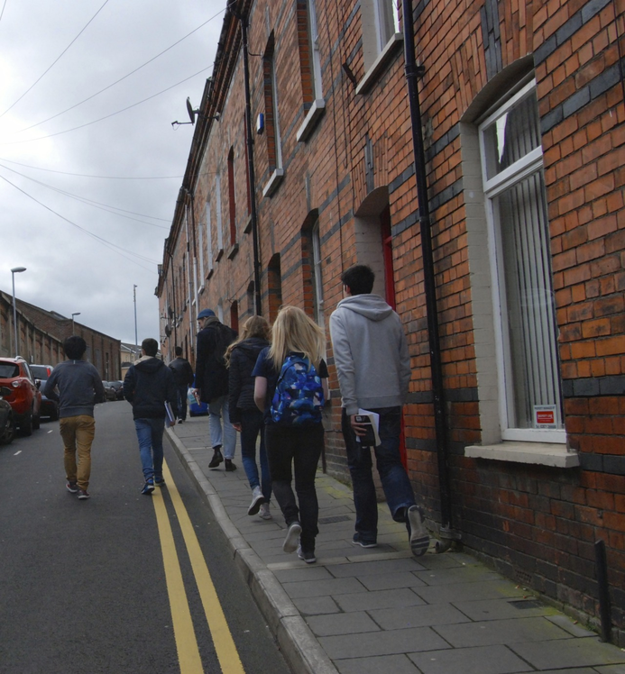 In Know Your Place Belfast (2014), PLACE combined youth engagement in built environment issues with skills development in digital media. This series of workshops was funded by Belfast City Council to engage young people living in different neighborhoods in North, South, East and West Belfast.[31] Our response to the brief was to invite participants, aged 14–19, to explore buildings of significant architectural interest that had lain empty, in some cases for years, in their neighborhoods. Their work – produced separately in film, photography and sound – would be drawn together at the end in a short film.