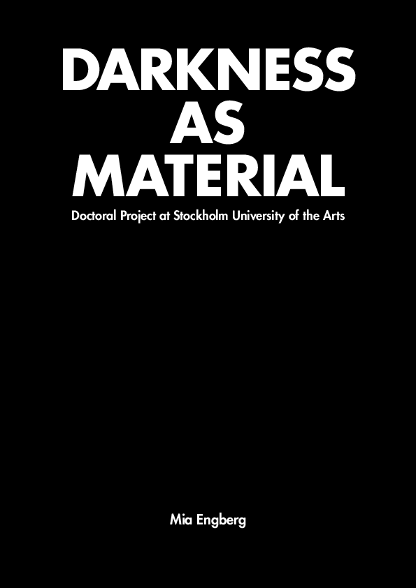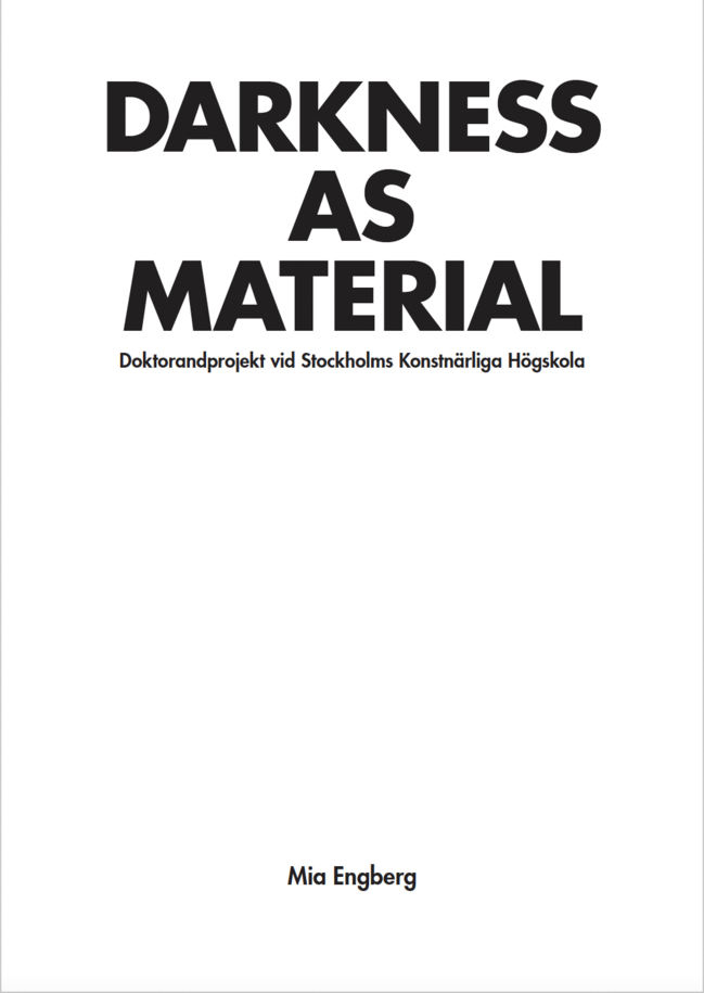 The doctoral project Darkness as Material, examines darkness as material and its relationship to cinematic storytelling. The study addresses different kinds of darkness: darkness in the image, darkness in the cinema theatre, darkness in the spectator where films are received and the darkness in the filmmaker, where the world is reflected and ideas are born. The project is inspired by Marguerite Duras' idea to kill cinema, and it explores film's potential to approach the place she described as 'the dark room, where we are deaf and blind and passion is possible'.