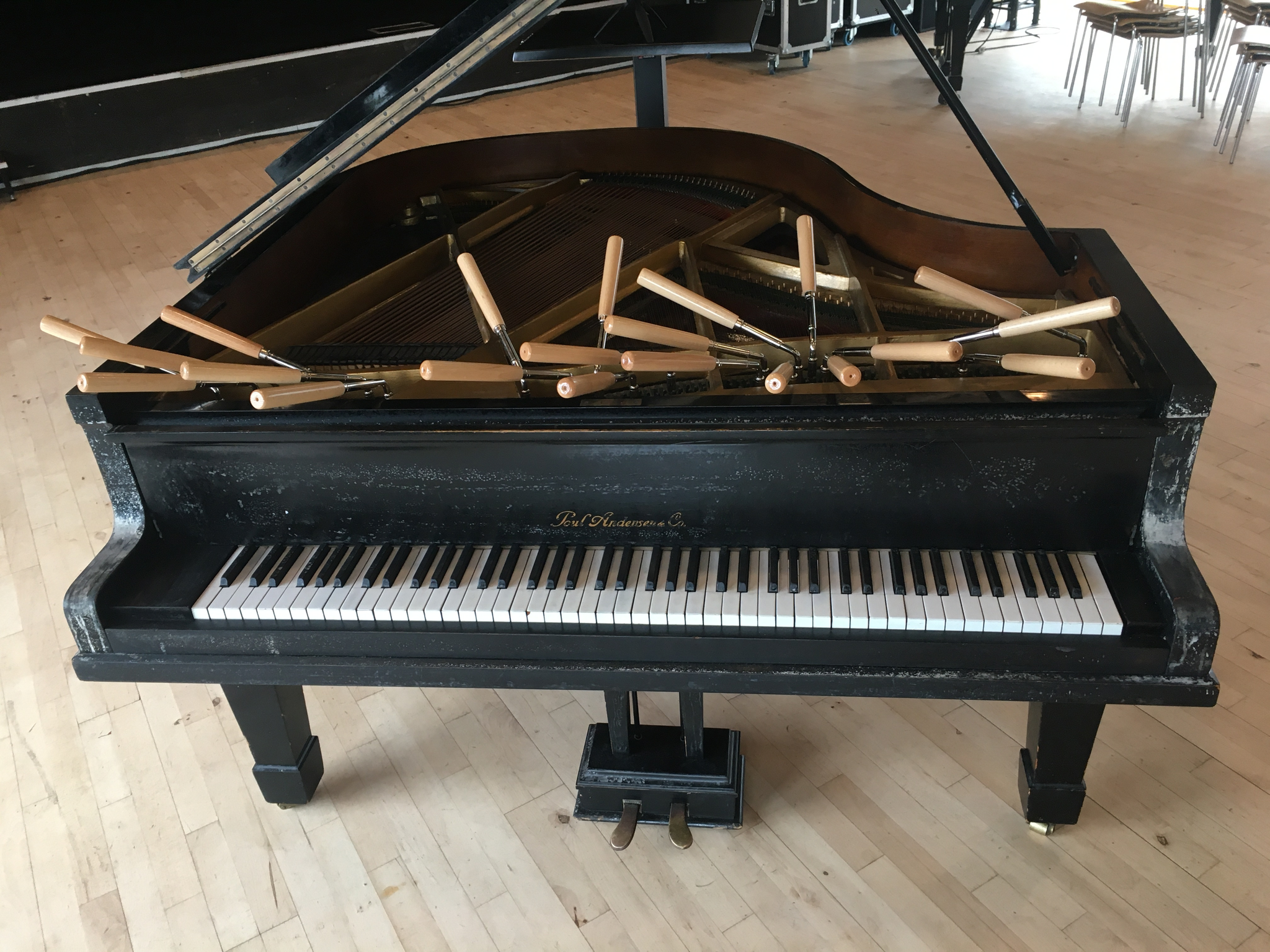 The disassembling process will be led by piano expert Vilhelm Rasmussen (from Vilhelms Musikværksted), and at the end, the grand piano will be separated, and all parts will be placed on the floor in front of us, so we can look at the giblets together and discuss the process of disassembly.