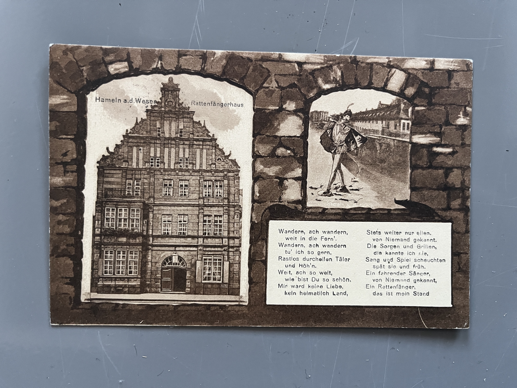 The Pied Piper returns to the city of Hameln on June 26, Saint John’s and Saint Paul’s Day, early in the morning at seven o’clock (others say it was at noon), now dressed in a hunter’s costume, with a dreadful look on his face, and wearing a strange red hat.