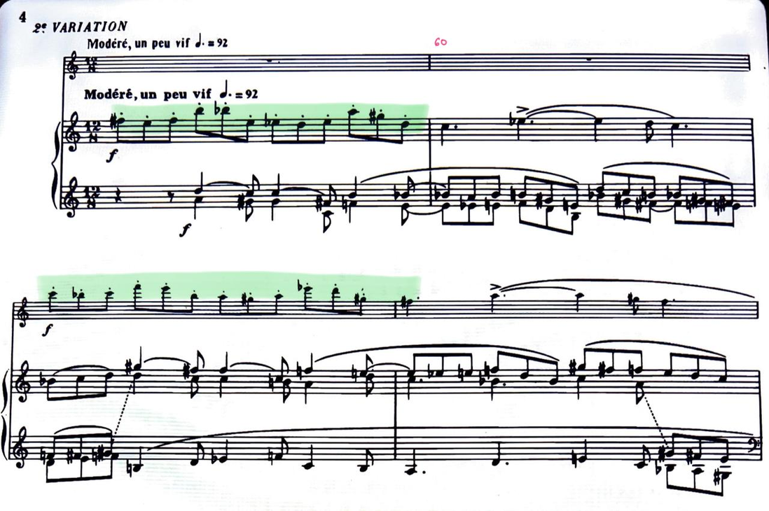 In the 2nd Variation the structure is a bit different, since now we are dealing with 4 sections as opposed to 3. We shall divide it accordingly: bars 59-64, 65-70, 71-79, and 80-83.