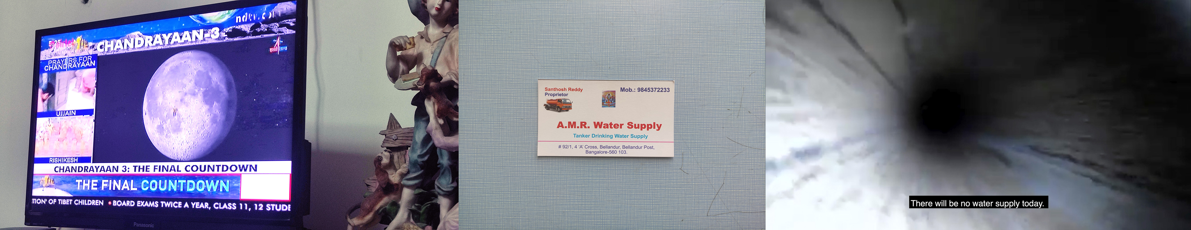 Walking on water, (from left) Chandrayan the first satelite on the south pole of the moon; Santhosh Reddy land owner by Bellandur lake and water tanker driver and supplier; Screenshot from the film 'To the Borewell Taal' showing operational image of borewell pipe