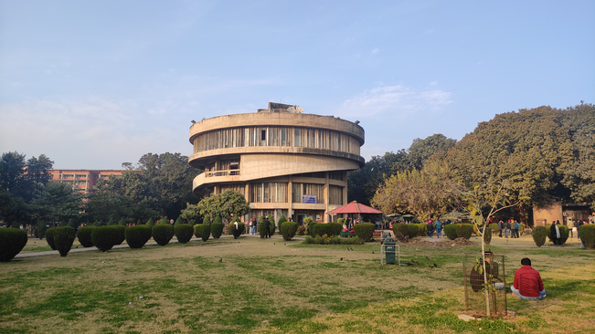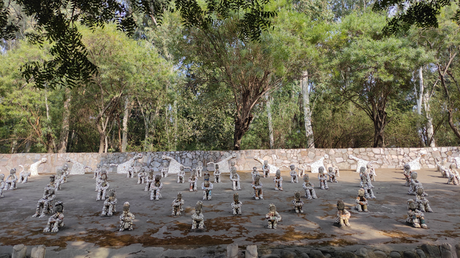 (left) library at Punjab University, designed by Le Corbusier; (right) Nek Chand's rock garden made of the remnants of the city as it was being built in the 1950's.
