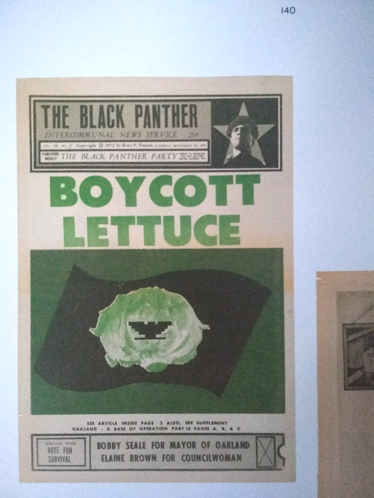 Black Panther in Solidarity with Boycott Lettuce, a movement in the US from 1970-78 lead by the United Farm Workers union against the poor working conditions in the lettuce farms, Photographed from a book on Black Panther posters and pamphlets