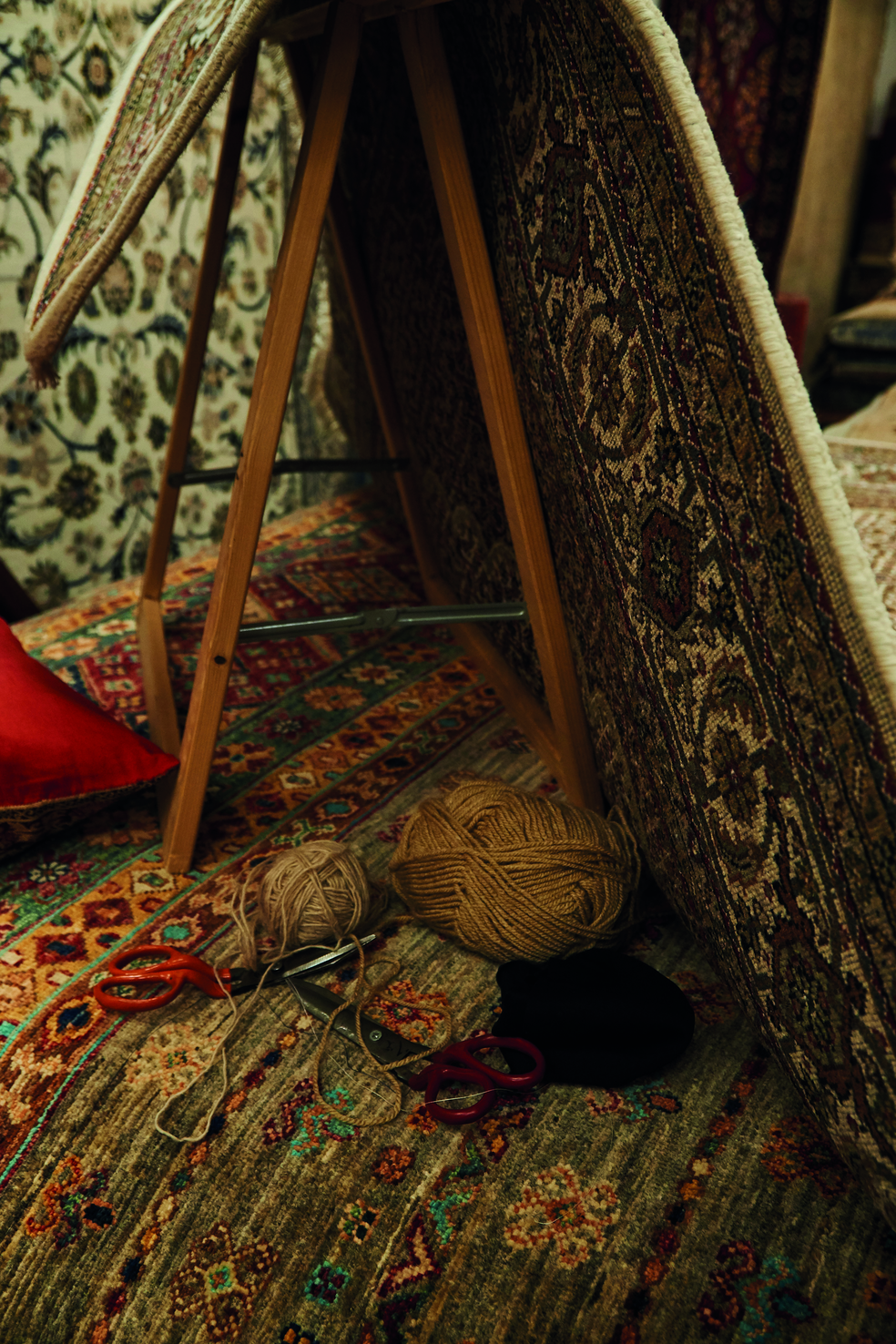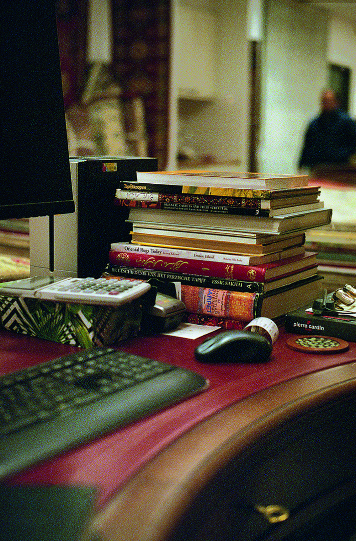 I meet Hamed, the owner of a carpet shop “De Pers” in The Hague’s city centre on a walk through the city while doing research for my graduation project. It takes me at least 15 minutes to bring myself to enter the store that is filled with carpets, and to introduce myself. That same Escher painting that hangs above my bedroom door has found its way into a huge carpet displayed at the front of the store, posing an almost absurd contrast to the rest of Persian and other Oriental carpets. We have a brief friendly talk and Hamed agrees to welcome me back the following week so that I can interview him and ask some questions about his family business and the carpets. This time, it only takes me about ten minutes to get over my shyness and enter the warm-lighted store. He invites me to sit down by the desk. As I hesitantly start interviewing him about his story and the business, I find myself enveloped in a familiar feeling. Sitting among all these carpets, in the midst of all those memories and stories; the smell that is surrounding me, familiar, as if I would be sitting in my grandparents’ apartment.