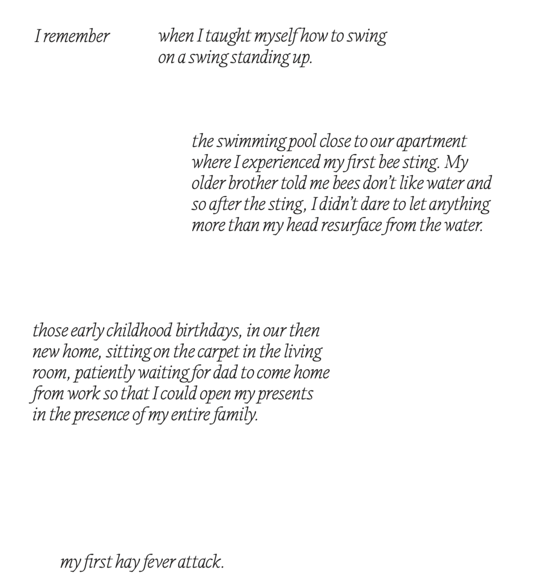 on identity, history, inter-generational connections, and the interplay between photography, writing and memory.