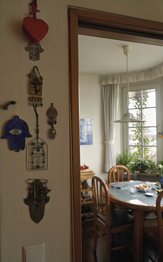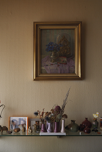 The shelf is a symbol for home, but it is also the place where we keep, and display memories. What kind of memories do we display on our shelves? Memories of a distant land, memories of a past, of another world? The shelf holds objects from a home that we transported to another home. Who are they displayed for?