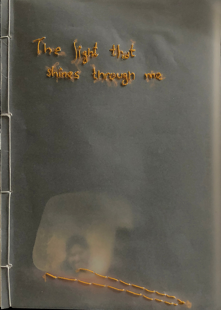 It is through the small, embroidered images in the booklet, that I painfully sat with the memories that I am made up of. I remember sitting in my tiny student room, the desk lamp shining into long and late winter nights, my eyes tired and my chest ever so heavy. I remember how often my string would break while I embroidered the outlines of my grandmother, of myself or of the objects found in the images, onto tracing paper. I remember cursing and making tiny knots, praying that it