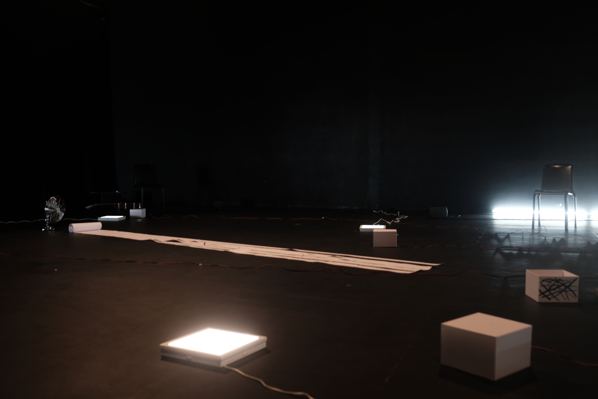 - eit verk for hardingfele, gitar, høgtalarar, pappesker, tusj og lys.