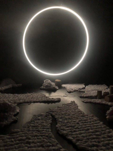 På bildet under, frå første versjon av førestillinga i Porsgrunn i 2020, kan ein sjå lysrørya som Evelina Dembacke brukte i denne førestillinga, desse kjøpte eg også inn for å teste i eigne prosjekt der Evelina var med som lyskonsulent, og ein ser dei brukt i verket Frosne Øyeblikk frå 2021.