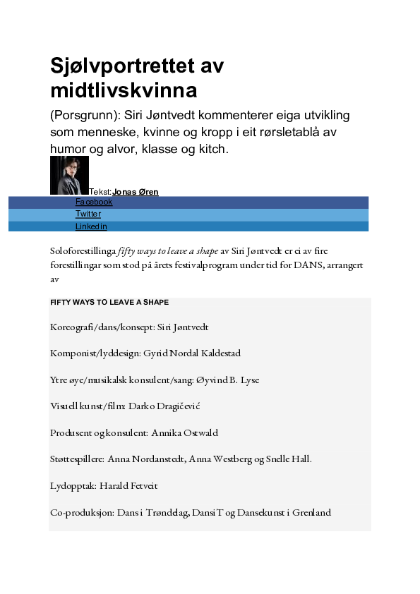 Konsept, koreografi, tekst, utøver Siri Jøntvedt