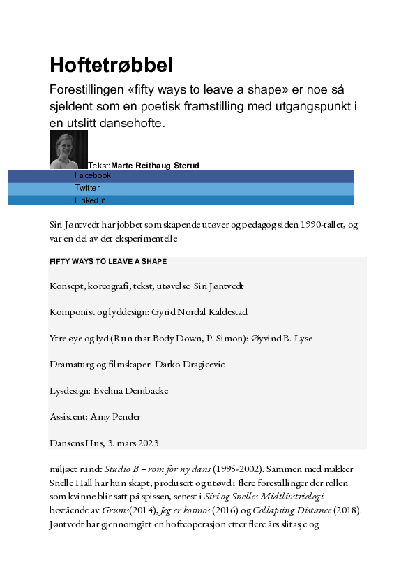 Frå programtekst, Dansens Hus, 2023: https://www.dansenshus.com/forestillinger/fifty-ways-to-leave-a-shape