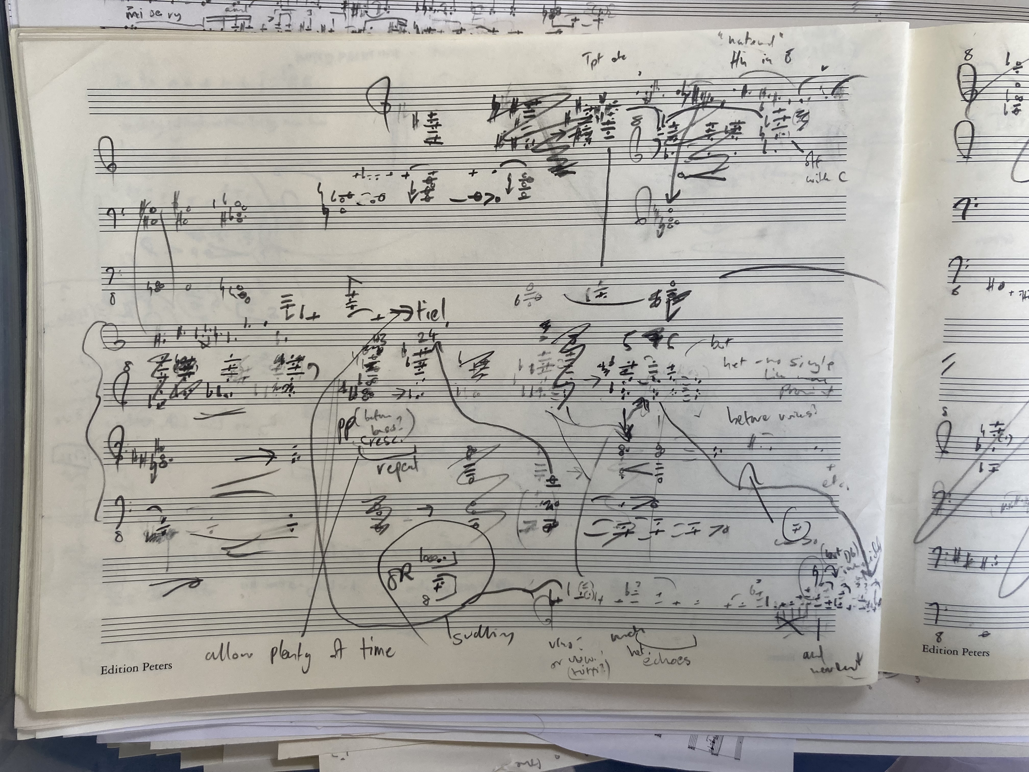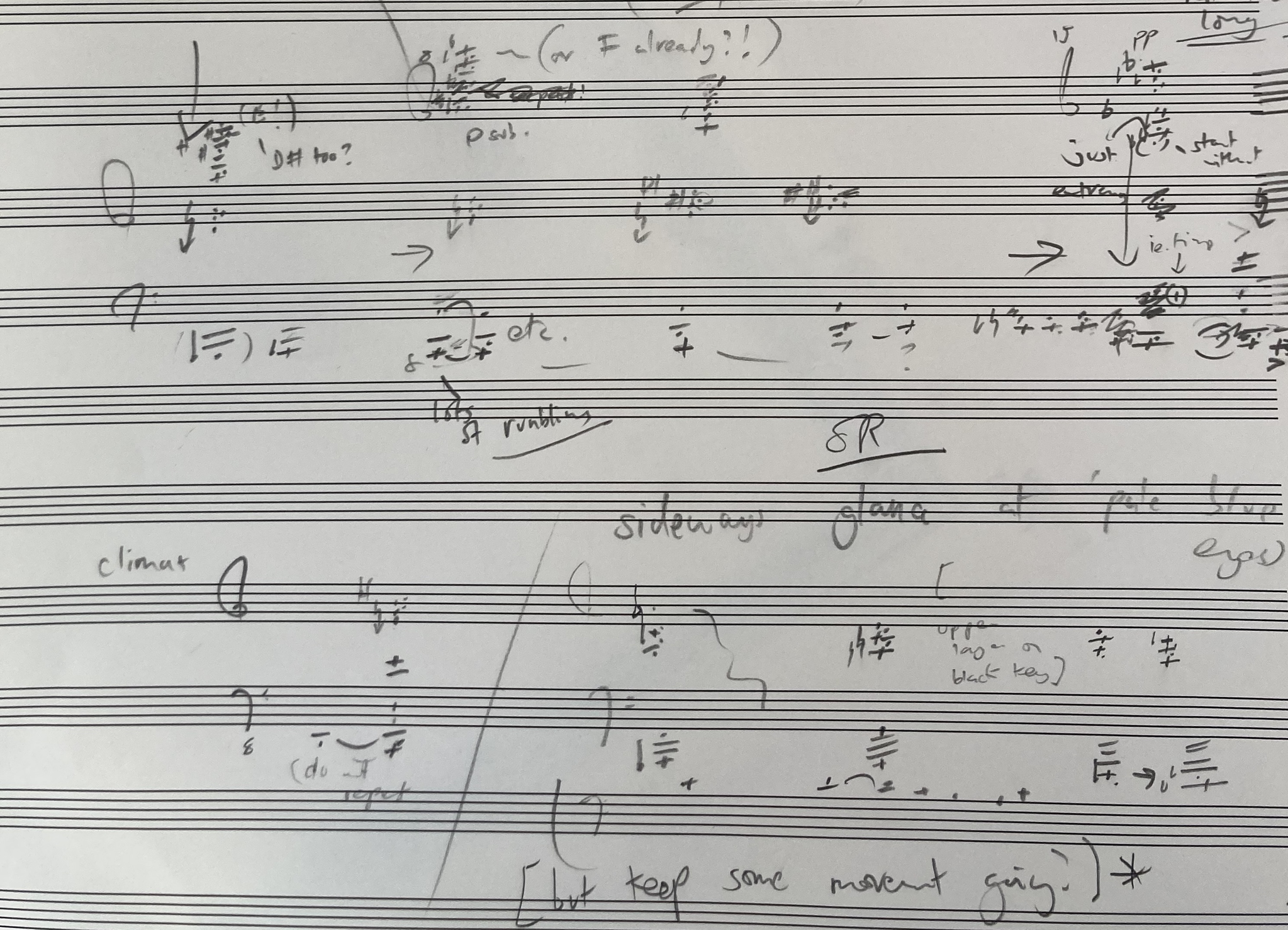 So, it may seem mad but it’s a process of having ideas, revising and refining them and endless tweaking. Of course, sometimes the material might ‘want’ to go a certain way, and I might follow it, but then realize that takes it in the wrong direction within the wider shape or trajectory of that passage within the piece as a whole.