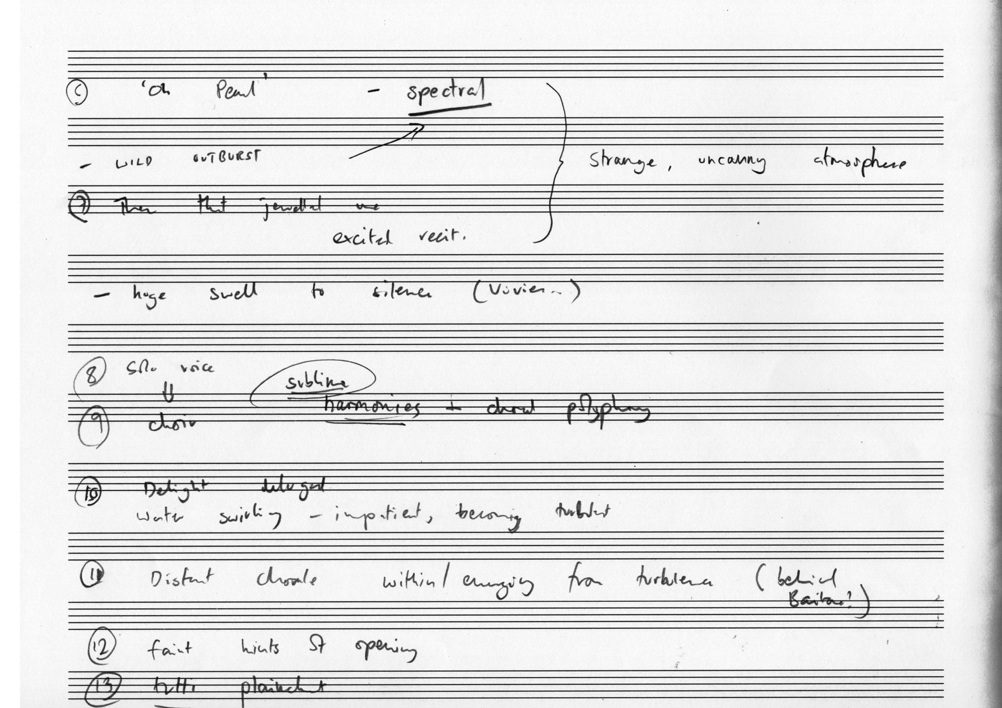 As I stated above, the potential of employing such long-range harmonic techniques to control Pearl’s structure in tandem with a tropological-topical approach to narrative pictorialism was part of my thinking from a relatively early stage in the creative process. As I noted in my diary (written, at this point, with a view to including the work in my doctoral portfolio):