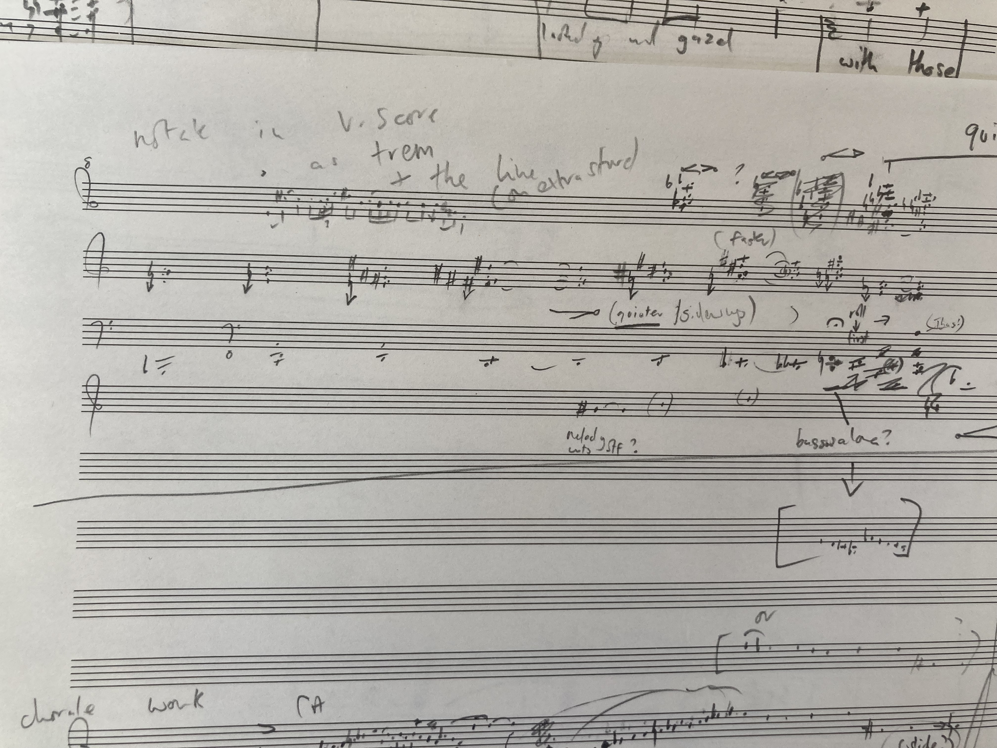 had a lesson with RB last week and he really said what I needed to hear. I’d just not thought enough about the role of tension and darkness near the beginning. I need(ed) to sow seeds so that it can bloom into the foreground later, and this is really making much more sense. For example, in the first choral passage, the harmony was original so sweet—and without tension it just seems twee almost. So, I’ve been thinking about how to subtly introduce these sounds earlier, so that they just seem to appear unexpectedly but inevitably later on.