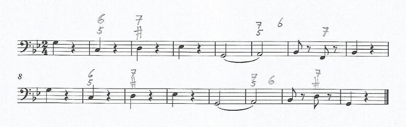- Looking in the score, filling in 'blank spaces', exploring differences between the 'created' bass line and the original bass line