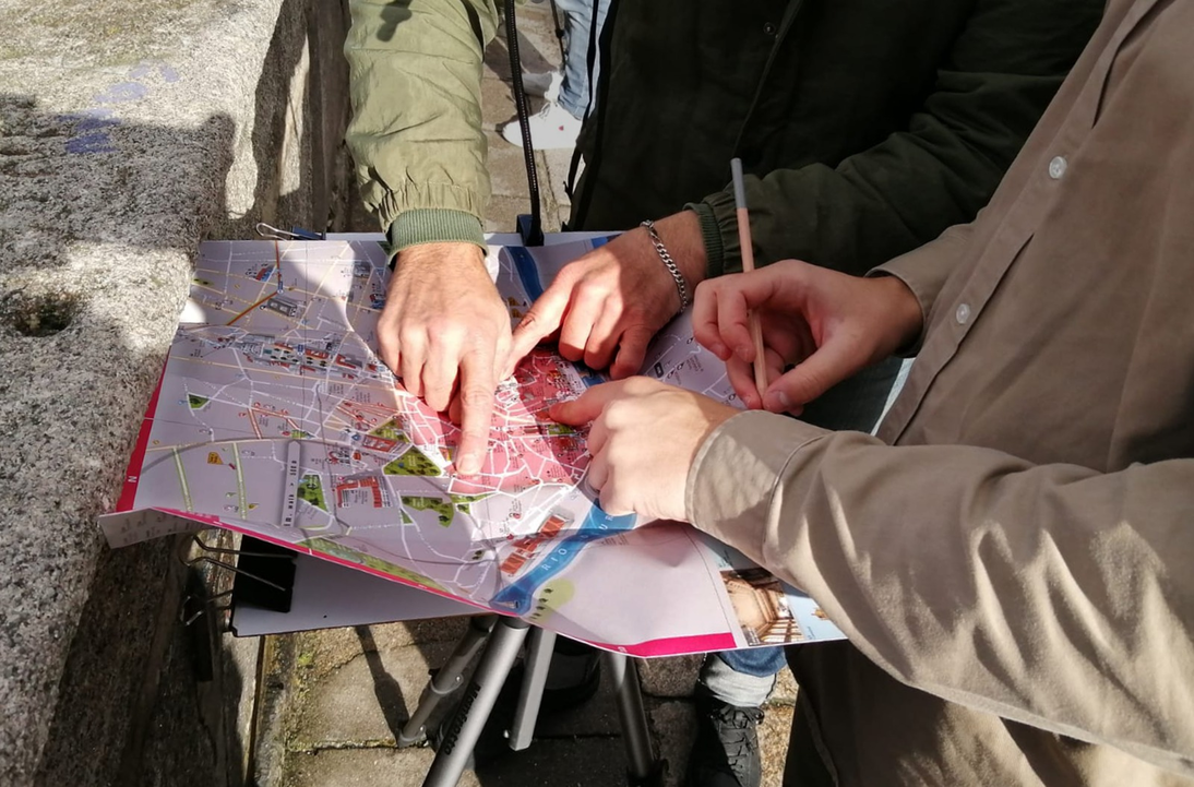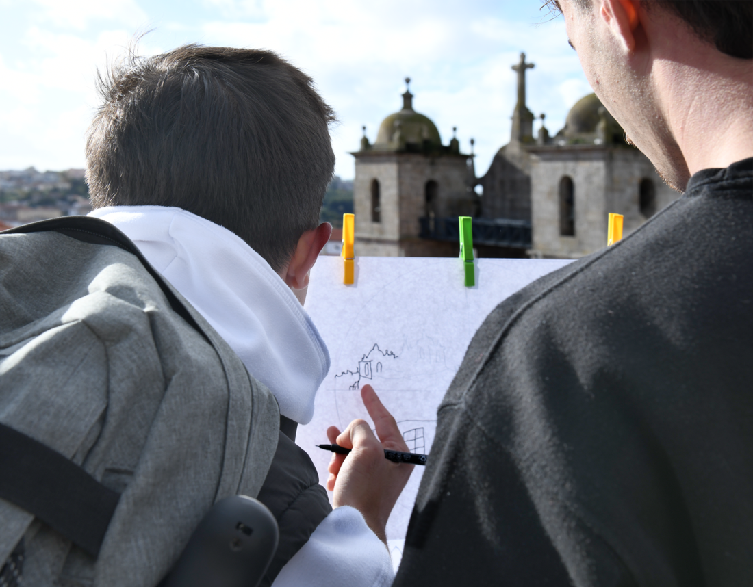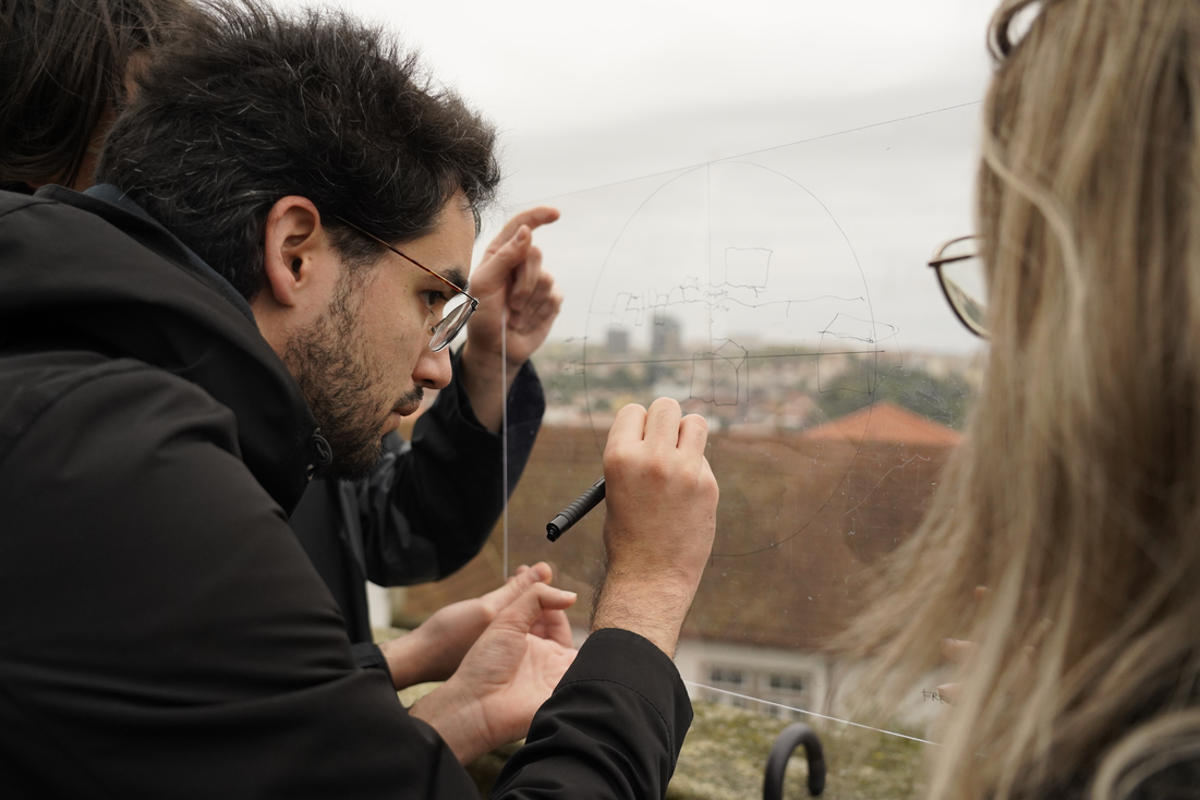 (eng.) Putting the Map into Perspective: Drawing Territory and Landscape in Geography The aim of this collaborative Drawing Workshop is to discuss on-site issues on drawing and reading the landscape starting from the map. Fine Arts and Arts and Humanities Faculties collaborative Drawing Workshop, as part of the research project DRAWinU – Drawing Across University Borders (PTDC/ART-OUT/3560/2021). University of Porto, Portugal.