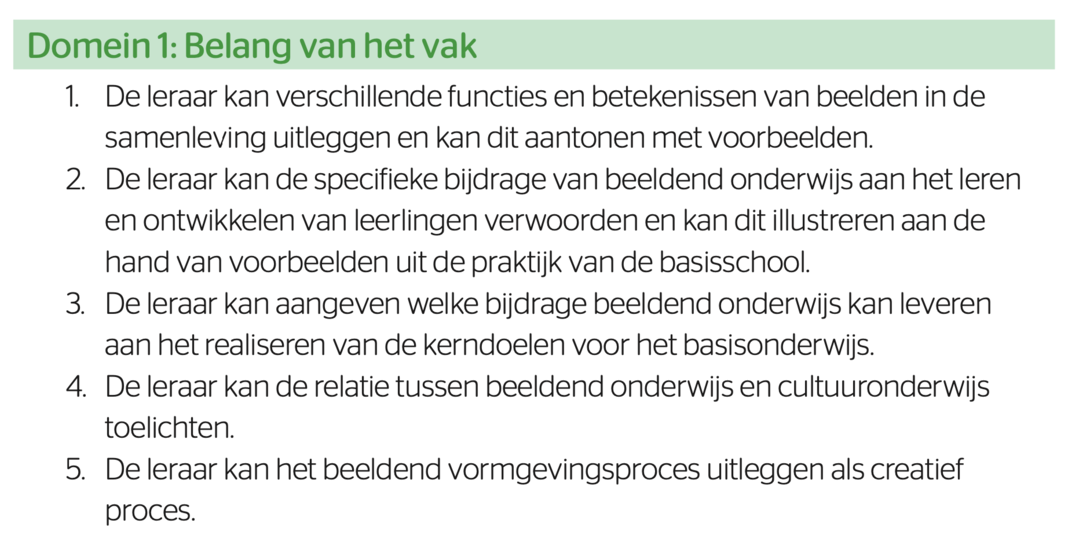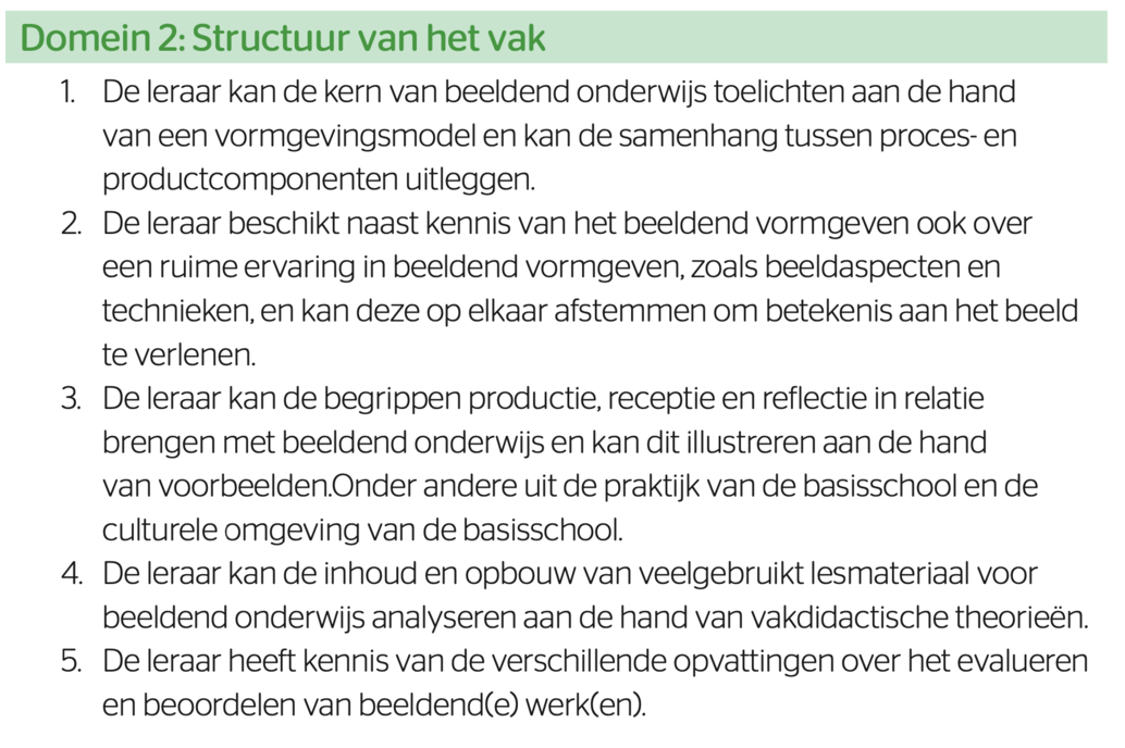 10VoorDeLeraar heeft ook voor het primaire onderwijs een document opgesteld waarin alle disciplines zijn opgenomen. Waaronder het Beeldend onderwijs. Hierin zijn competenties opgenomen die de leerkrachten zouden moeten beheersen. Deze competenties zijn belangrijk voor mijn onderzoek.