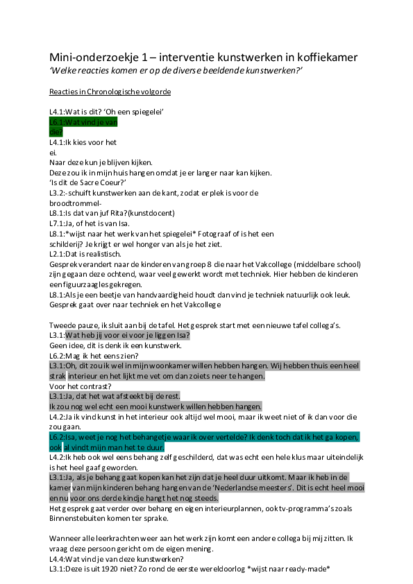 -Er heerst een vraagteken bij de zingeving van kunst in het onderwijs. Wat is dit, wat zegt het MT hierover en de collega's en hoe is dit terug te zien in de praktijk? (zingeving)