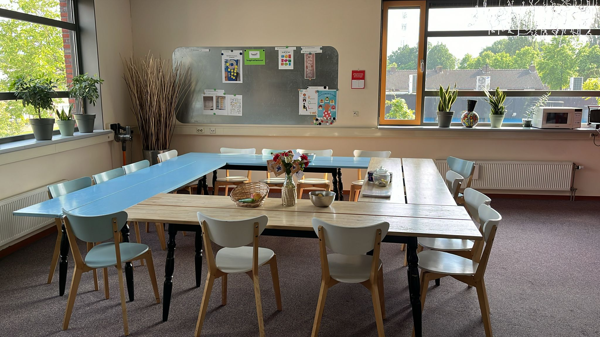 De koffiekamer is de locatie geworden voor de interventieruimte. Hier is de collaborative space, waar het werk in de klas even geen rol speelt. De perfecte ruimte voor de interventies. En tevens een ruimte waar ik mezelf bewust buiten kan plaatsen en niet altijd aanwezig ben.