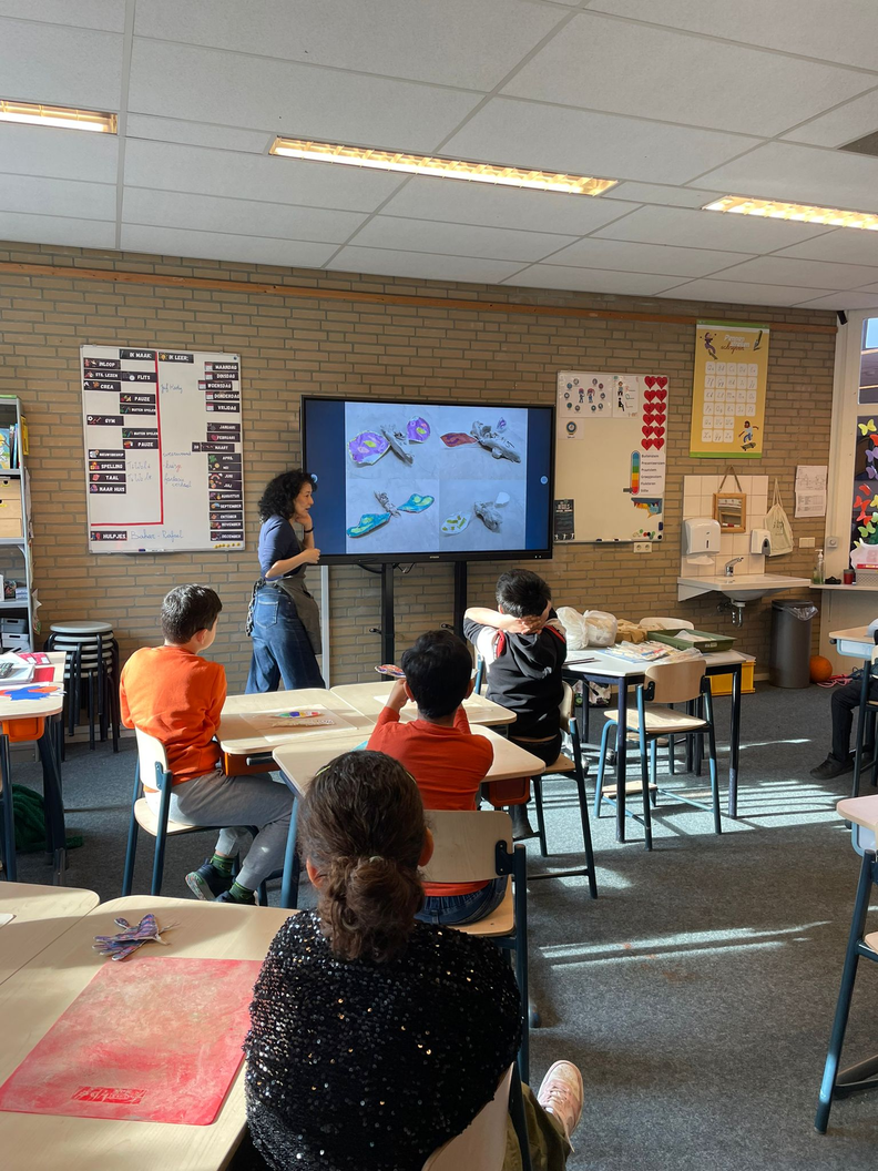 Al snel had ik door dat juf Rita haar lessen erg goed had voorbereid. Ze had verschillende spullen en materialen mee én ze had een powerpoint voorbereid met de les waarover het zou gaan. De les zelf vond ik erg leuk. De kinderen mochten aan de slag met klei. Alleen was de opdracht dat ze een vliegmobiel moesten gaan maken. Waarom een vliegmobiel? Nou, dit is omdat op 30 mei voor onze school kunstwerk geplaatst zou worden die te maken heeft met DAF. Om deze reden moesten de kinderen van onze school ook iets ontwerpen wat daarmee te maken heeft, zodat we dat kunnen laten zien tijdens de opening.