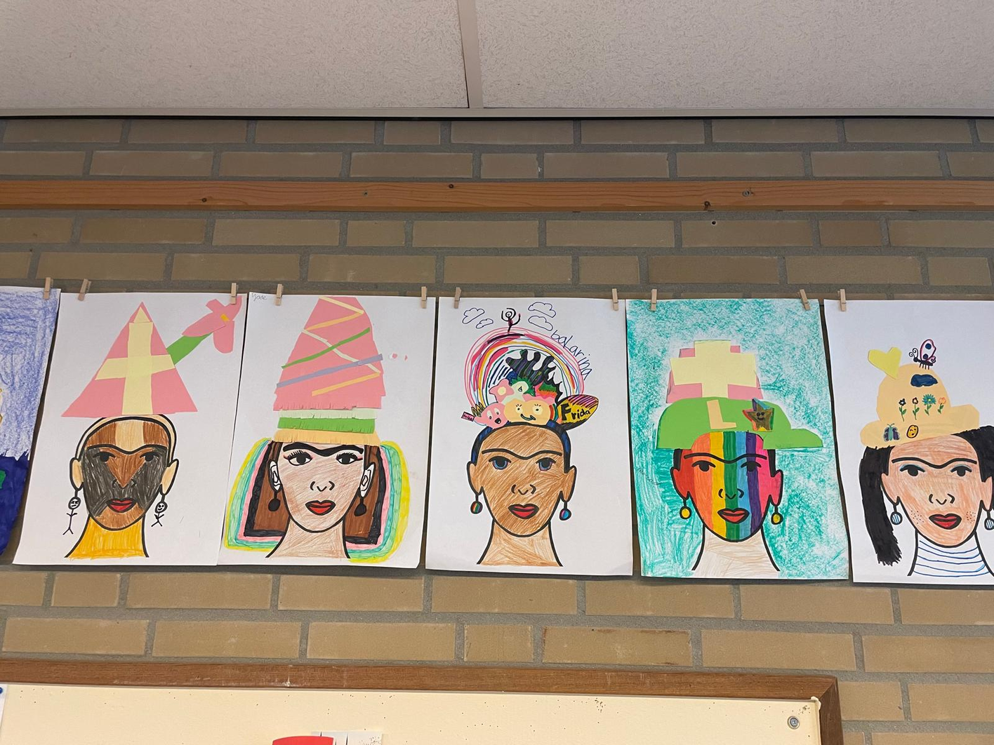geïnspireerd door Frida Kahlo.Ontwerp Frida Kahlo met minimaal 10 verschillende onderdelen. Materiaalgebruik is eigen keuze.