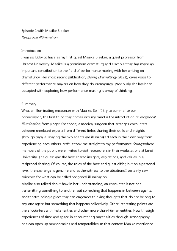 The podcast series is produced with the support of Inter Arts Centre at Lund University and Malmö Theatre Academy.