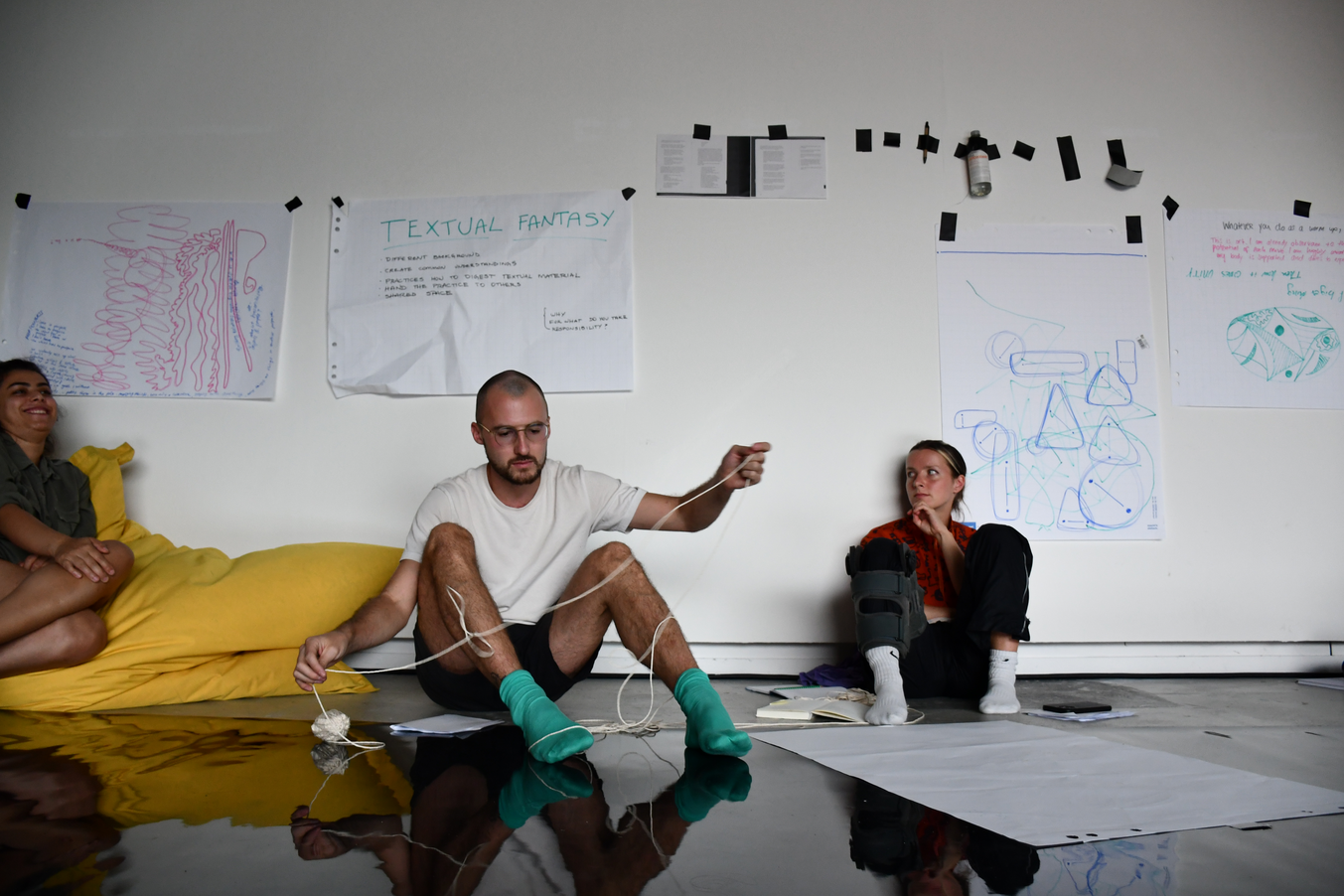 Textual Fantasy is a communal reading-dancing circle during which partakers read together and experience a movement practice - both led by hosting guest(s). This cosy and informal format is a way to meet different texts, meet each other, and to find ways of physically digesting information.